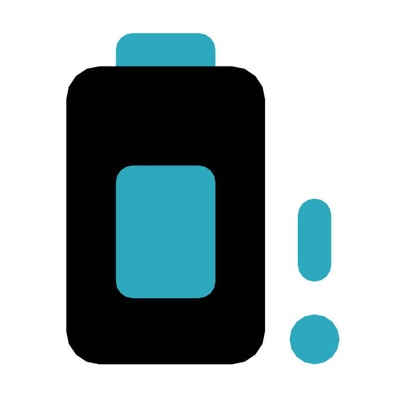 <svg fill="#000000" width="800px" height="800px" viewBox="0 0 24 24" id="battery-50-alert" data-name="Flat Color" xmlns="http://www.w3.org/2000/svg" class="icon flat-color"><path id="secondary" d="M12,6H8A1,1,0,0,1,7,5V3A1,1,0,0,1,8,2h4a1,1,0,0,1,1,1V5A1,1,0,0,1,12,6Zm7,13a1.5,1.5,0,1,0,1.5,1.5A1.5,1.5,0,0,0,19,19Zm0-2a1,1,0,0,1-1-1V13a1,1,0,0,1,2,0v3A1,1,0,0,1,19,17Z" style="fill: rgb(44, 169, 188);"></path><rect id="primary" x="4" y="4" width="12" height="18" rx="2" style="fill: rgb(0, 0, 0);"></rect><rect id="secondary-2" data-name="secondary" x="7" y="10" width="6" height="8" rx="1" style="fill: rgb(44, 169, 188);"></rect></svg>