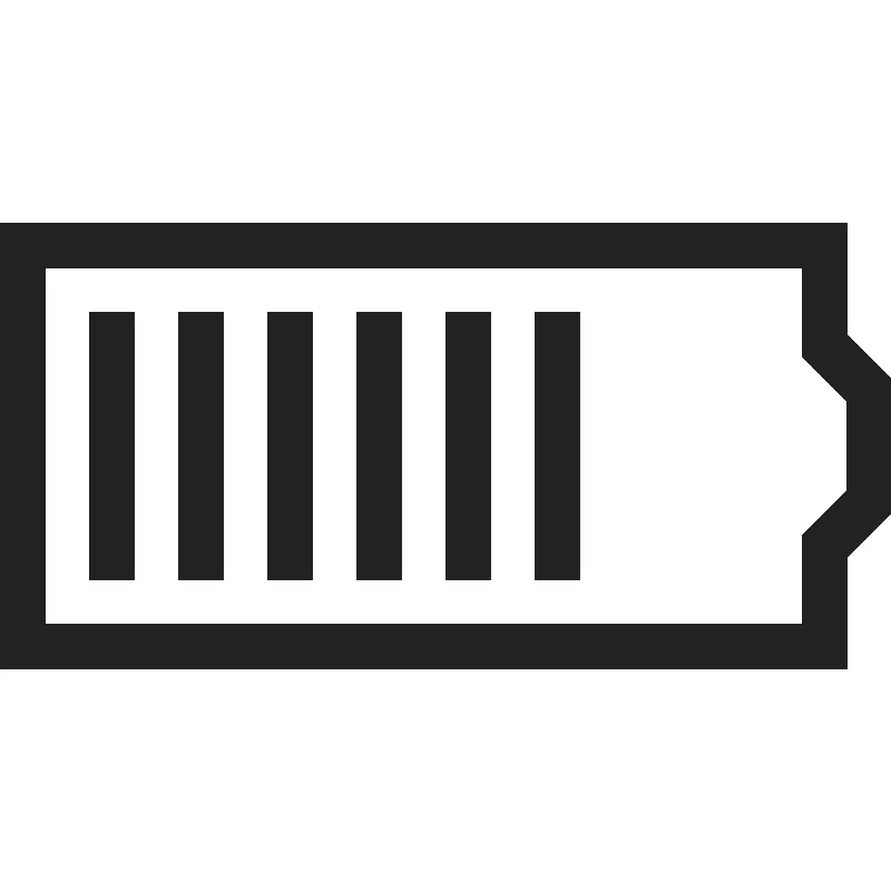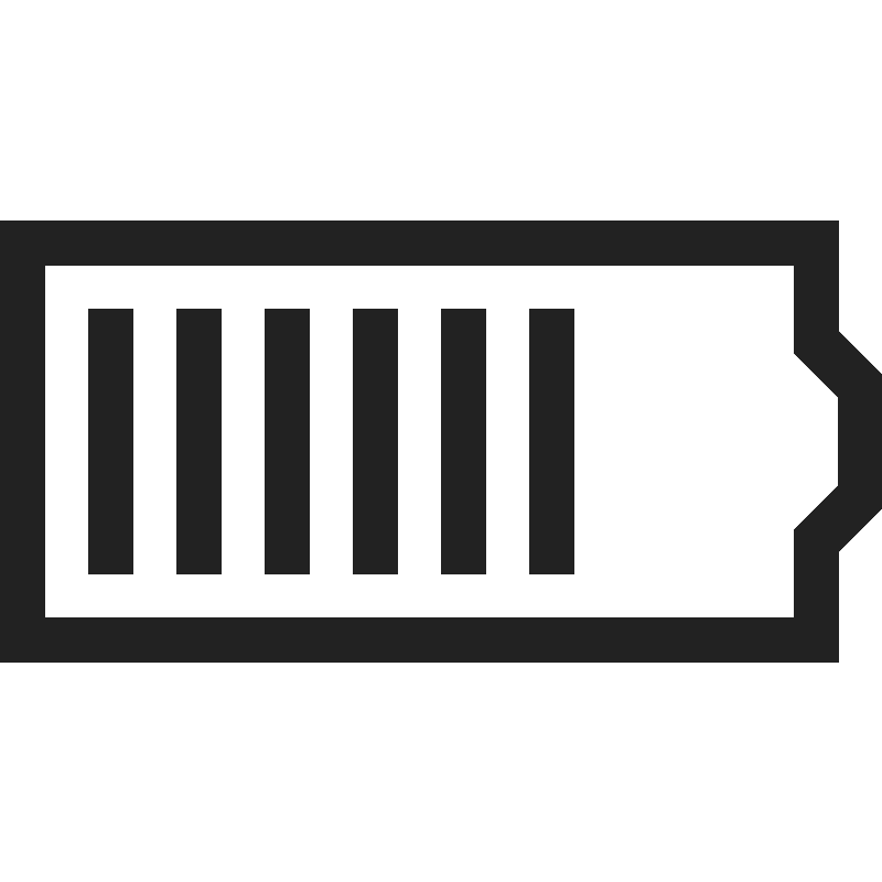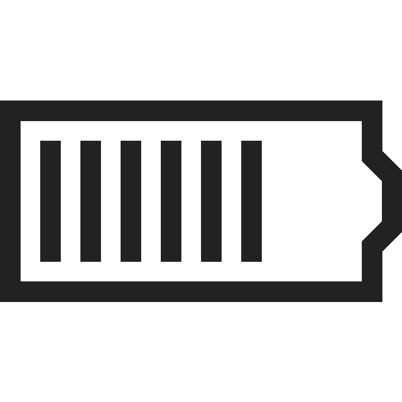 <path d="M 0 5 L 0 15 L 19 15 L 19 12.5 L 20 11.5 L 20 8.5 L 19 7.5 L 19 5 L 0 5 z M 1 6 L 18 6 L 18 8 L 19 9 L 19 11 L 18 12 L 18 14 L 1 14 L 1 6 z M 2 7 L 2 13 L 3 13 L 3 7 L 2 7 z M 4 7 L 4 13 L 5 13 L 5 7 L 4 7 z M 6 7 L 6 13 L 7 13 L 7 7 L 6 7 z M 8 7 L 8 13 L 9 13 L 9 7 L 8 7 z M 10 7 L 10 13 L 11 13 L 11 7 L 10 7 z M 12 7 L 12 13 L 13 13 L 13 7 L 12 7 z " style="fill:#222222; fill-opacity:1; stroke:none; stroke-width:0px;"/>