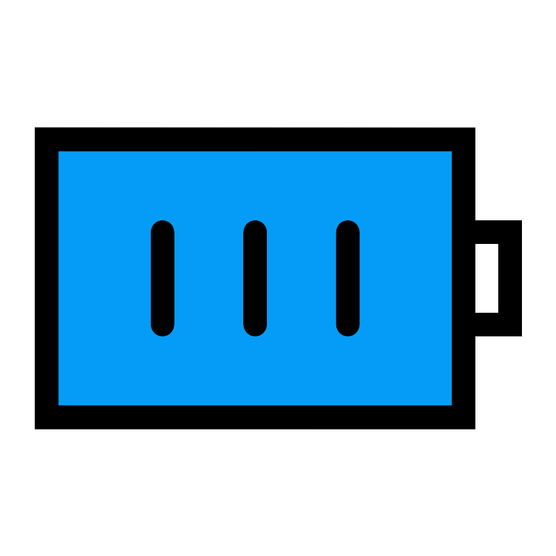 <svg width="800px" height="800px" viewBox="0 0 24 24" xmlns="http://www.w3.org/2000/svg" fill="none" stroke="#000000" stroke-width="1" stroke-linecap="round" stroke-linejoin="miter"><rect x="2" y="6" width="18" height="12" rx="0" fill="#059cf7" opacity="0.1"></rect><rect x="2" y="6" width="18" height="12" rx="0"></rect><line x1="7" y1="10" x2="7" y2="14"></line><line x1="11" y1="10" x2="11" y2="14"></line><line x1="15" y1="10" x2="15" y2="14"></line><polyline points="20 10 22 10 22 14 20 14"></polyline></svg>