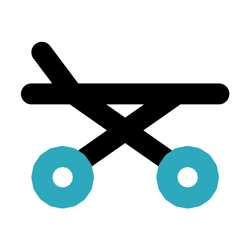 <svg fill="#000000" width="800px" height="800px" viewBox="0 0 24 24" id="bed-left" data-name="Line Color" xmlns="http://www.w3.org/2000/svg" class="icon line-color"><path id="primary" d="M16.49,15.64,7,9M17,9,7.54,15.62M21,9H3M7,9,4,5" style="fill: none; stroke: rgb(0, 0, 0); stroke-linecap: round; stroke-linejoin: round; stroke-width: 2;"></path><path id="secondary" d="M4,17a2,2,0,1,0,2-2A2,2,0,0,0,4,17Zm12,0a2,2,0,1,0,2-2A2,2,0,0,0,16,17Z" style="fill: none; stroke: rgb(44, 169, 188); stroke-linecap: round; stroke-linejoin: round; stroke-width: 2;"></path></svg>