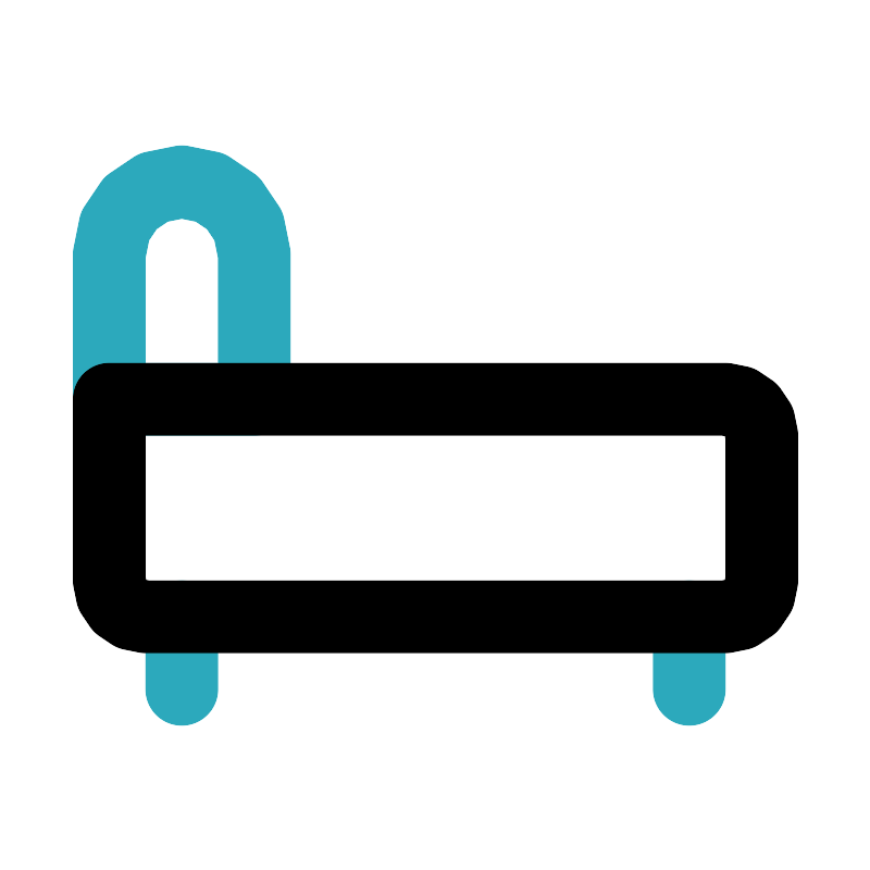 <svg fill="#000000" width="800px" height="800px" viewBox="0 0 24 24" id="bedroom-8" data-name="Line Color" xmlns="http://www.w3.org/2000/svg" class="icon line-color"><path id="secondary" d="M7,11H3V7A2,2,0,0,1,5,5H5A2,2,0,0,1,7,7ZM5,17v2m14-2v2" style="fill: none; stroke: rgb(44, 169, 188); stroke-linecap: round; stroke-linejoin: round; stroke-width: 2;"></path><path id="primary" d="M10,5h4a1,1,0,0,1,1,1V22a1,1,0,0,1-1,1H9a0,0,0,0,1,0,0V6a1,1,0,0,1,1-1Z" transform="translate(26 2) rotate(90)" style="fill: none; stroke: rgb(0, 0, 0); stroke-linecap: round; stroke-linejoin: round; stroke-width: 2;"></path></svg>