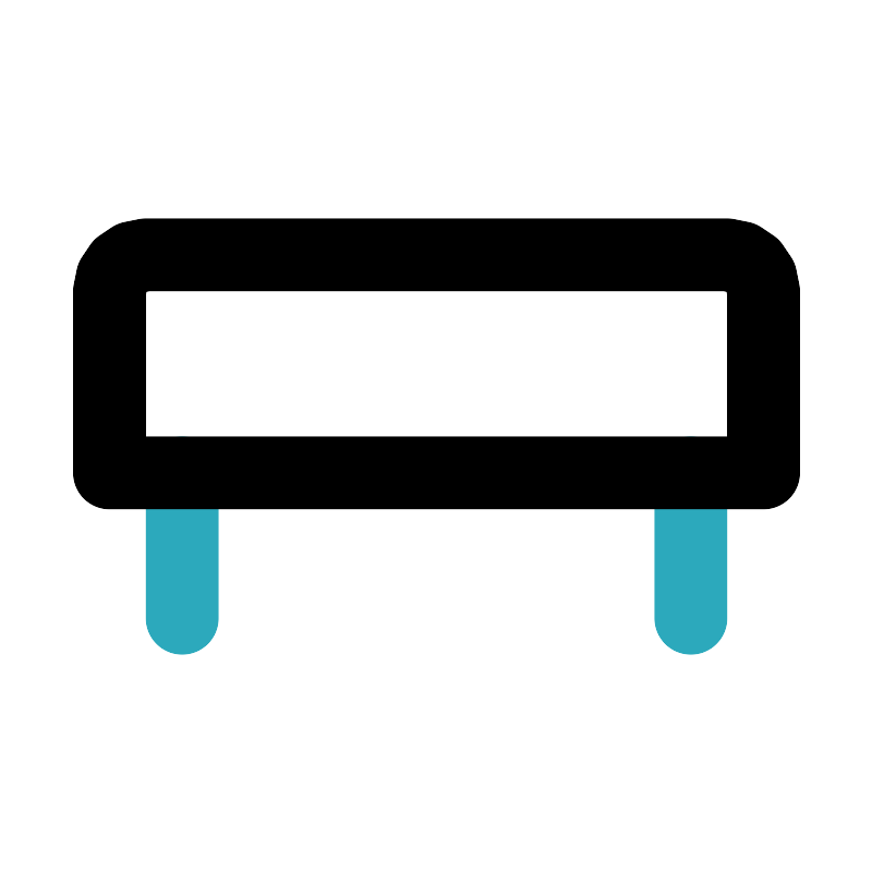 <svg fill="#000000" width="800px" height="800px" viewBox="0 0 24 24" id="bench-2" data-name="Line Color" xmlns="http://www.w3.org/2000/svg" class="icon line-color"><path id="secondary" d="M5,13v4m14-4v4" style="fill: none; stroke: rgb(44, 169, 188); stroke-linecap: round; stroke-linejoin: round; stroke-width: 2;"></path><path id="primary" d="M3,7H21a0,0,0,0,1,0,0v5a1,1,0,0,1-1,1H4a1,1,0,0,1-1-1V7A0,0,0,0,1,3,7Z" transform="translate(24 20) rotate(180)" style="fill: none; stroke: rgb(0, 0, 0); stroke-linecap: round; stroke-linejoin: round; stroke-width: 2;"></path></svg>