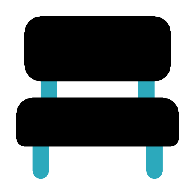 <svg fill="#000000" width="800px" height="800px" viewBox="0 0 24 24" id="bench" data-name="Flat Color" xmlns="http://www.w3.org/2000/svg" class="icon flat-color"><path id="secondary" d="M19,22a1,1,0,0,1-1-1V17a1,1,0,0,1,2,0v4A1,1,0,0,1,19,22ZM5,22a1,1,0,0,1-1-1V17a1,1,0,0,1,2,0v4A1,1,0,0,1,5,22Zm13-8a1,1,0,0,1-1-1V9a1,1,0,0,1,2,0v4A1,1,0,0,1,18,14ZM6,14a1,1,0,0,1-1-1V9A1,1,0,0,1,7,9v4A1,1,0,0,1,6,14Z" style="fill: rgb(44, 169, 188);"></path><path id="primary" d="M22,14v3a1,1,0,0,1-1,1H3a1,1,0,0,1-1-1V14a2,2,0,0,1,2-2H20A2,2,0,0,1,22,14ZM5,10H19a2,2,0,0,0,2-2V4a2,2,0,0,0-2-2H5A2,2,0,0,0,3,4V8A2,2,0,0,0,5,10Z" style="fill: rgb(0, 0, 0);"></path></svg>