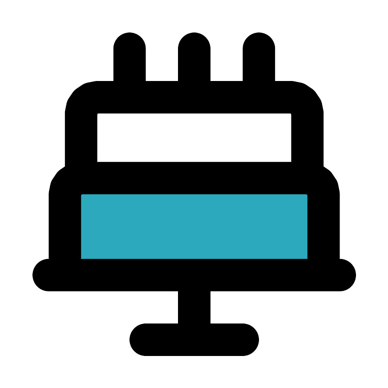 <svg fill="#000000" width="800px" height="800px" viewBox="0 0 24 24" id="birthday-cake-3" data-name="Flat Line" xmlns="http://www.w3.org/2000/svg" class="icon flat-line"><path id="secondary" d="M5,11H19a1,1,0,0,1,1,1v5a0,0,0,0,1,0,0H4a0,0,0,0,1,0,0V12A1,1,0,0,1,5,11Z" style="fill: rgb(44, 169, 188); stroke-width: 2;"></path><path id="primary" d="M9,21h6m-3-4v4M12,3V6M8,3V6m8-3V6M3,17H21m-1,0H4V12a1,1,0,0,1,1-1H19a1,1,0,0,1,1,1ZM18,6H6A1,1,0,0,0,5,7v4H19V7A1,1,0,0,0,18,6Z" style="fill: none; stroke: rgb(0, 0, 0); stroke-linecap: round; stroke-linejoin: round; stroke-width: 2;"></path></svg>