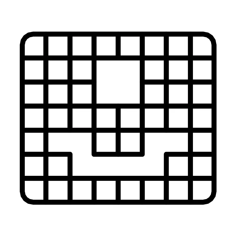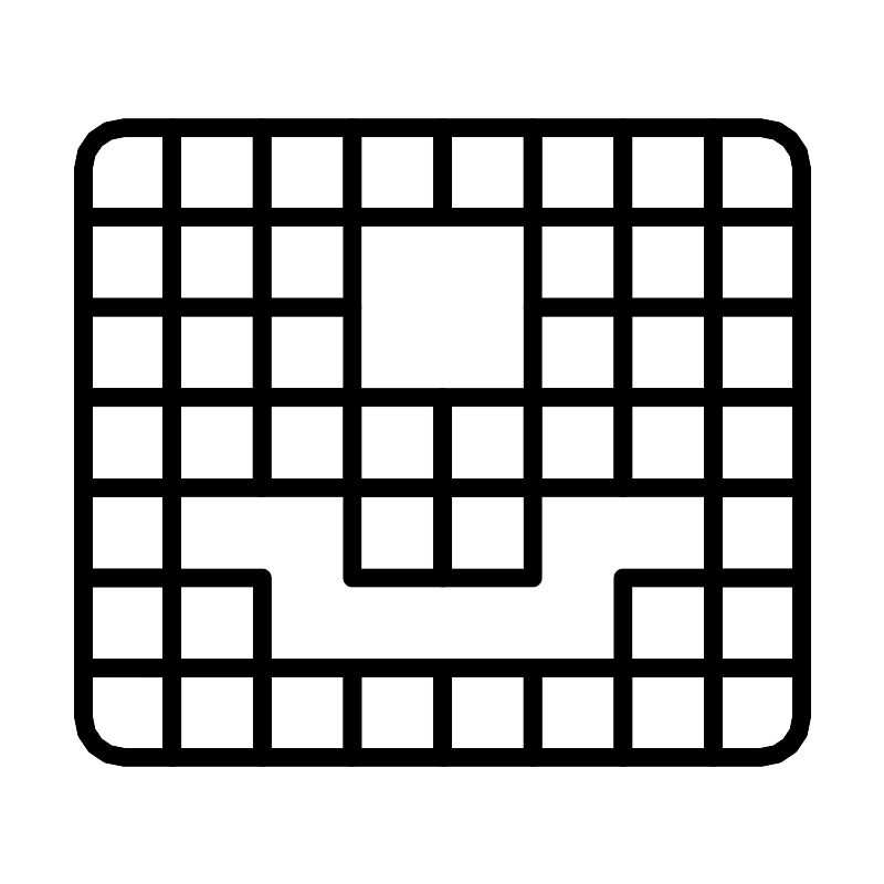 <svg width="800px" height="800px" viewBox="0 0 48 48" id="Layer_2" data-name="Layer 2" xmlns="http://www.w3.org/2000/svg"><defs><style>.cls-1{fill:none;stroke:#000000;stroke-linecap:round;stroke-linejoin:round;}</style></defs><path class="cls-1" d="M6.7,6.91a2.2,2.2,0,0,0-2.2,2.2v2.65H9.3V6.91Z"/><rect class="cls-1" x="9.3" y="6.91" width="4.9" height="4.85"/><rect class="cls-1" x="14.2" y="6.91" width="4.9" height="4.85"/><rect class="cls-1" x="19.1" y="6.91" width="4.9" height="4.85"/><rect class="cls-1" x="24" y="6.91" width="4.9" height="4.85"/><rect class="cls-1" x="28.9" y="6.91" width="4.9" height="4.85"/><rect class="cls-1" x="33.79" y="6.91" width="4.9" height="4.85"/><path class="cls-1" d="M38.69,6.91v4.85H43.5V9.11a2.2,2.2,0,0,0-2.2-2.2Z"/><rect class="cls-1" x="4.5" y="11.76" width="4.8" height="4.9"/><rect class="cls-1" x="9.3" y="11.76" width="4.9" height="4.9"/><rect class="cls-1" x="14.2" y="11.76" width="4.9" height="4.9"/><rect class="cls-1" x="28.9" y="11.76" width="4.9" height="4.9"/><rect class="cls-1" x="33.8" y="11.76" width="4.9" height="4.9"/><rect class="cls-1" x="38.7" y="11.76" width="4.8" height="4.9"/><rect class="cls-1" x="4.5" y="16.65" width="4.8" height="4.9"/><rect class="cls-1" x="9.3" y="16.65" width="4.9" height="4.9"/><rect class="cls-1" x="14.2" y="16.65" width="4.9" height="4.9"/><rect class="cls-1" x="28.9" y="16.65" width="4.9" height="4.9"/><rect class="cls-1" x="33.8" y="16.65" width="4.9" height="4.9"/><rect class="cls-1" x="38.7" y="16.65" width="4.8" height="4.9"/><rect class="cls-1" x="4.5" y="21.55" width="4.8" height="4.9"/><rect class="cls-1" x="9.3" y="21.55" width="4.9" height="4.9"/><rect class="cls-1" x="14.2" y="21.55" width="4.9" height="4.9"/><rect class="cls-1" x="19.1" y="21.55" width="4.9" height="4.9"/><rect class="cls-1" x="24" y="21.55" width="4.9" height="4.9"/><rect class="cls-1" x="28.9" y="21.55" width="4.9" height="4.9"/><rect class="cls-1" x="33.8" y="21.55" width="4.9" height="4.9"/><rect class="cls-1" x="38.7" y="21.55" width="4.8" height="4.9"/><rect class="cls-1" x="4.5" y="26.45" width="4.8" height="4.9"/><rect class="cls-1" x="19.1" y="26.45" width="4.9" height="4.9"/><rect class="cls-1" x="24" y="26.45" width="4.9" height="4.9"/><rect class="cls-1" x="38.7" y="26.45" width="4.8" height="4.9"/><rect class="cls-1" x="4.5" y="31.35" width="4.8" height="4.9"/><rect class="cls-1" x="9.31" y="31.35" width="4.9" height="4.9"/><rect class="cls-1" x="33.8" y="31.35" width="4.9" height="4.9"/><rect class="cls-1" x="38.7" y="31.35" width="4.8" height="4.9"/><path class="cls-1" d="M4.5,36.24v2.65a2.2,2.2,0,0,0,2.2,2.2H9.31V36.25Z"/><rect class="cls-1" x="9.31" y="36.24" width="4.9" height="4.85"/><rect class="cls-1" x="14.21" y="36.24" width="4.9" height="4.85"/><rect class="cls-1" x="19.1" y="36.24" width="4.9" height="4.85"/><rect class="cls-1" x="24" y="36.24" width="4.9" height="4.85"/><rect class="cls-1" x="28.9" y="36.24" width="4.9" height="4.85"/><rect class="cls-1" x="33.8" y="36.24" width="4.9" height="4.85"/><path class="cls-1" d="M38.7,36.24v4.85h2.6a2.2,2.2,0,0,0,2.2-2.2V36.24Z"/></svg>
