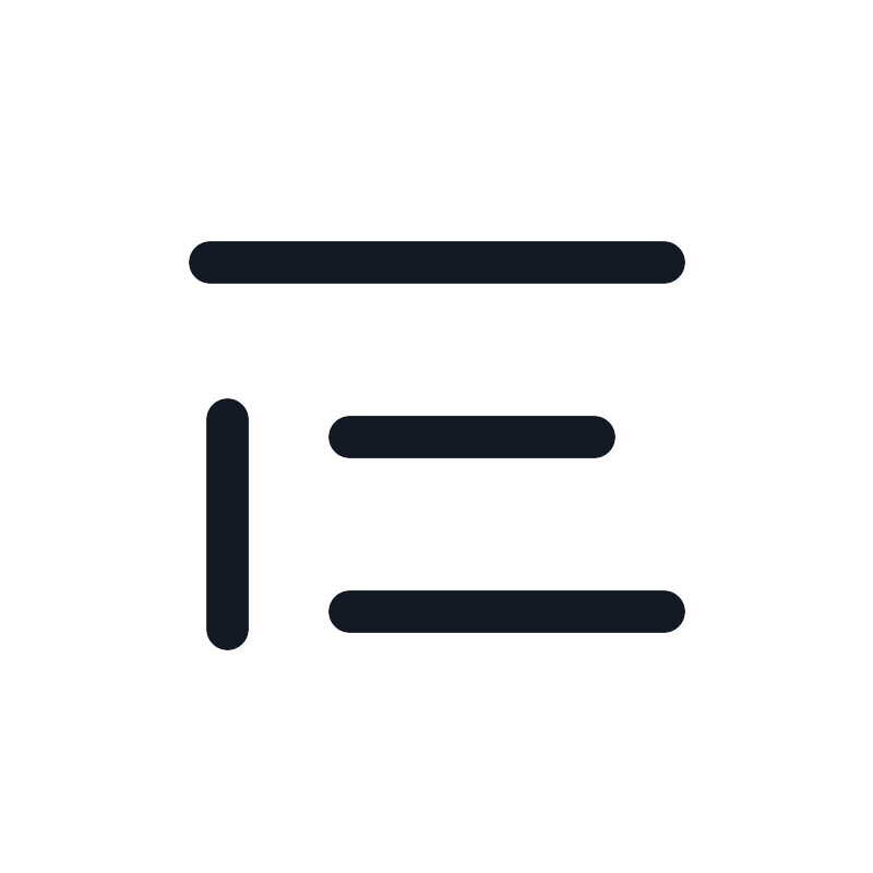 <path d="M10 17.5H19M6 7.5H19M10 12.5H17M6.5 12V18" stroke="#121923" stroke-width="1.2"/>