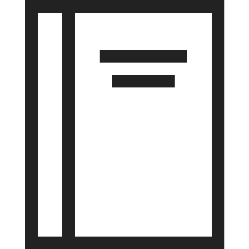 <path d="M 2 0 L 2 20 L 18 20 L 18 0 L 2 0 z M 3 1 L 5 1 L 5 19 L 3 19 L 3 1 z M 6 1 L 17 1 L 17 19 L 6 19 L 6 1 z M 8 4 L 8 5 L 15 5 L 15 4 L 8 4 z M 9 6 L 9 7 L 14 7 L 14 6 L 9 6 z " style="fill:#222222; fill-opacity:1; stroke:none; stroke-width:0px;"/>