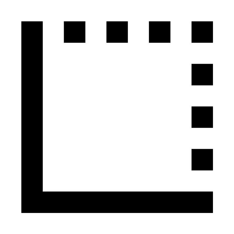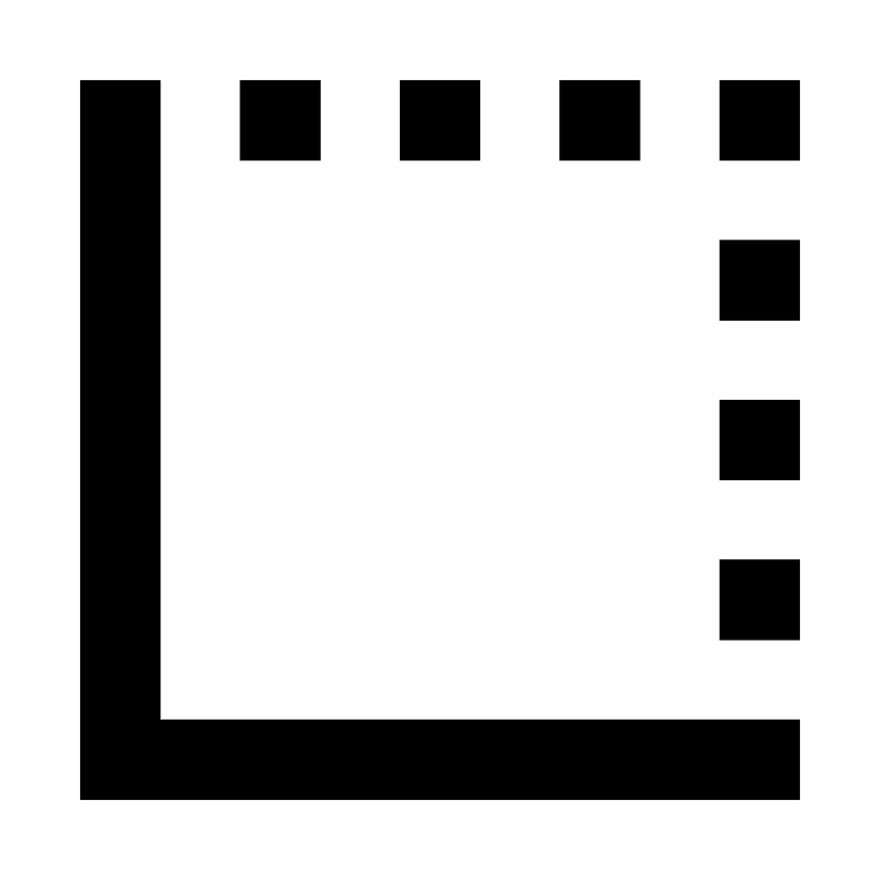 <svg fill="#000000" width="800px" height="800px" viewBox="0 0 22 22" xmlns="http://www.w3.org/2000/svg" id="memory-border-bottom-left"><path d="M10 4V2H12V4H10M18 12V10H20V12H18M18 16V14H20V16H18M6 4V2H8V4H6M18 8V6H20V8H18M18 4V2H20V4H18M14 4V2H16V4H14M2 20V2H4V18H20V20H2Z" /></svg>