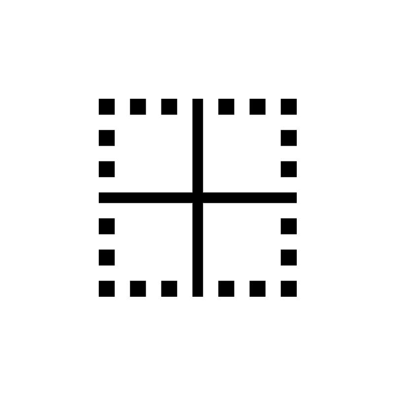 <path fill="#000000" fill-opacity="1" stroke-width="0.2" stroke-linejoin="round" d="M 19,19L 22,19L 22,22L 19,22L 19,19 Z M 22,28L 19,28L 19,25L 22,25L 22,28 Z M 22,34L 19,34L 19,31L 22,31L 22,34 Z M 36.9999,37.0001L 37,19.0001L 39,19.0001L 38.9999,37.0001L 57,37L 57,39L 39,39L 39,57L 37,57L 37,39L 19,39L 19,37L 36.9999,37.0001 Z M 57,45L 54,45L 54,42L 57,42L 57,45 Z M 57,51L 54,51L 54,48L 57,48L 57,51 Z M 56.9999,57L 54,57L 53.9999,54L 57,54L 56.9999,57 Z M 53.9999,19.0001L 56.9999,19.0001L 57,22L 54,22L 53.9999,19.0001 Z M 57,28L 54,28L 54,25L 57,25L 57,28 Z M 57,34L 54,34L 54,31L 57,31L 57,34 Z M 31,22L 31,19L 34,19.0001L 34,22L 31,22 Z M 25,22.0001L 25,19.0001L 28,19.0001L 28,22.0001L 25,22.0001 Z M 47.9999,22.0001L 47.9999,19.0001L 50.9999,19.0001L 50.9999,22.0001L 47.9999,22.0001 Z M 42,22.0001L 42,19.0001L 44.9999,19.0001L 44.9999,22.0001L 42,22.0001 Z M 21.9999,45L 19,45L 19,42L 21.9999,42L 21.9999,45 Z M 22,51.0001L 19,51.0001L 19,48L 21.9999,48L 22,51.0001 Z M 21.9999,54.0001L 22,57L 19,57L 19,54L 21.9999,54.0001 Z M 30.9999,57L 30.9999,54.0001L 34,54.0001L 34,57L 30.9999,57 Z M 24.9999,57L 24.9999,54.0001L 28,54.0001L 28,57L 24.9999,57 Z M 47.9999,57L 47.9999,54.0001L 50.9999,54.0001L 50.9999,57L 47.9999,57 Z M 41.9999,57L 41.9999,54.0001L 44.9999,54.0001L 44.9999,57L 41.9999,57 Z "/>