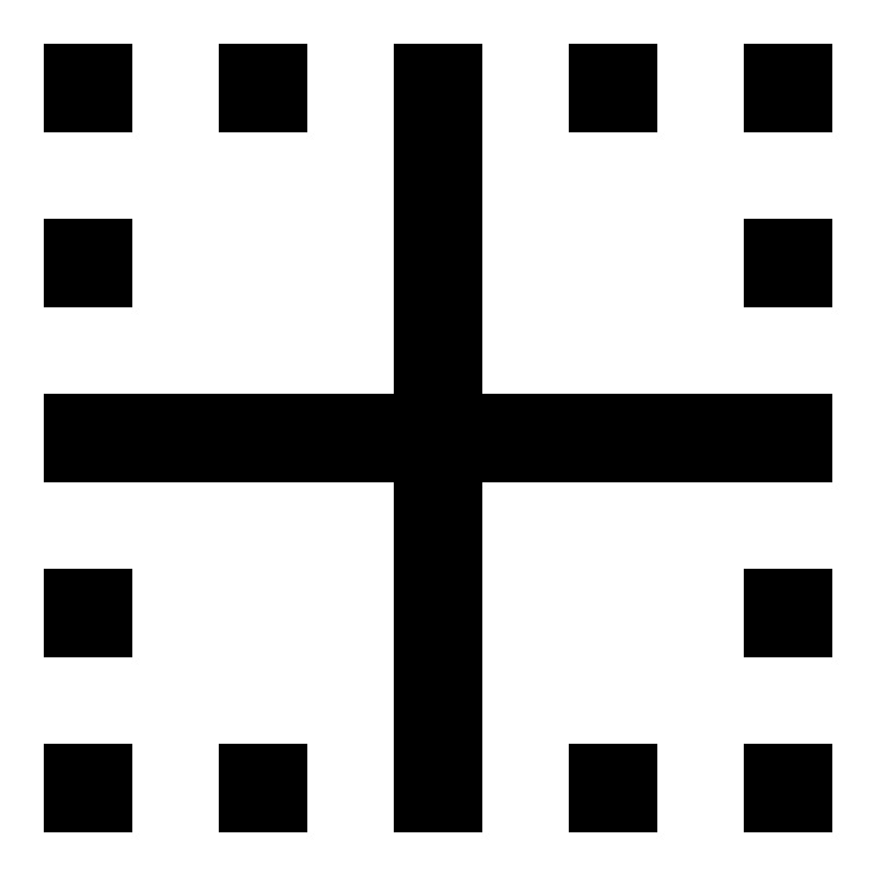 <svg fill="#000000" width="800px" height="800px" viewBox="0 0 20 20" xmlns="http://www.w3.org/2000/svg"><path d="M9 9V1h2v8h8v2h-8v8H9v-8H1V9h8zM1 1h2v2H1V1zm0 4h2v2H1V5zm0 8h2v2H1v-2zm0 4h2v2H1v-2zM5 1h2v2H5V1zm0 16h2v2H5v-2zm8-16h2v2h-2V1zm0 16h2v2h-2v-2zm4-16h2v2h-2V1zm0 4h2v2h-2V5zm0 8h2v2h-2v-2zm0 4h2v2h-2v-2z"/></svg>
