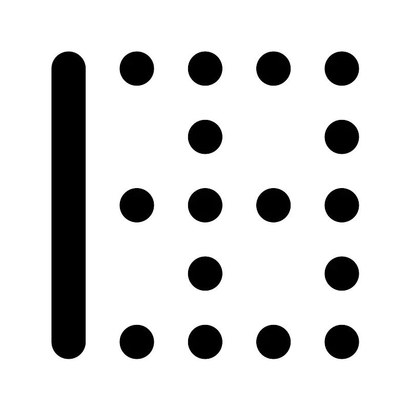 <path d="M4 20L4 4M8 4L7.99 4M12 4L11.99 4M16 4L15.99 4M20 4L19.99 4M12 8H11.99M20 8H19.99M8 12H7.99M12 12H11.99M16 12H15.99M20 12H19.99M12 16H11.99M20 16H19.99M8 20H7.99M12 20H11.99M16 20H15.99M20 20H19.99" stroke="#000000" stroke-width="2" stroke-linecap="round" stroke-linejoin="round"/>