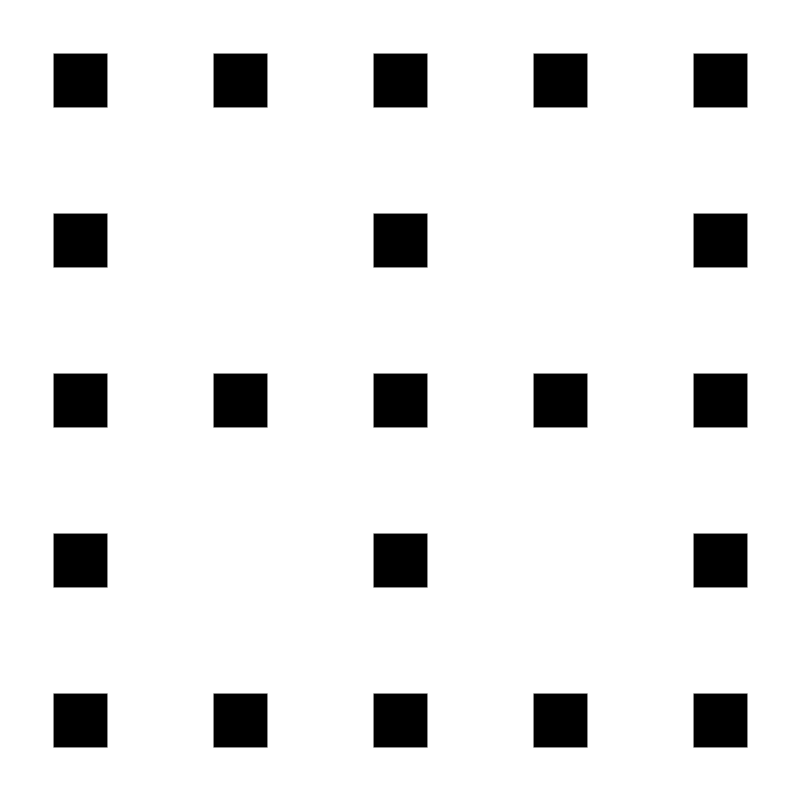 <path fill-rule="evenodd" clip-rule="evenodd" d="M2 2H1V1H2V2ZM5 2H4V1H5V2ZM8 2H7V1H8V2ZM11 2H10V1H11V2ZM14 2H13V1H14V2ZM2 5H1V4H2V5ZM8 5H7V4H8V5ZM14 5H13V4H14V5ZM2 8H1V7H2V8ZM5 8H4V7H5V8ZM8 8H7V7H8V8ZM11 8H10V7H11V8ZM14 8H13V7H14V8ZM2 11H1V10H2V11ZM8 11H7V10H8V11ZM14 11H13V10H14V11ZM2 14H1V13H2V14ZM5 14H4V13H5V14ZM8 14H7V13H8V14ZM11 14H10V13H11V14ZM14 14H13V13H14V14Z" fill="#000000"/>