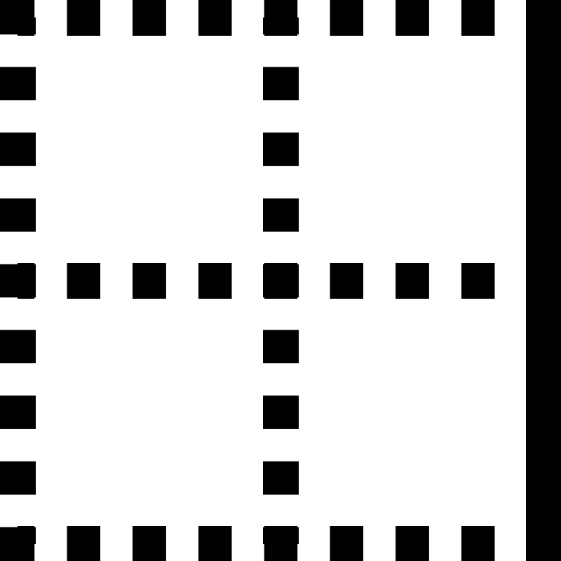 <path d="M.969 0H0v.969h.5V1h.469V.969H1V.5H.969V0zm.937 1h.938V0h-.938v1zm1.875 0h.938V0H3.78v1zm1.875 0h.938V0h-.938v1zM7.531.969V1h.938V.969H8.5V.5h-.031V0H7.53v.5H7.5v.469h.031zM9.406 1h.938V0h-.938v1zm1.875 0h.938V0h-.938v1zm1.875 0h.938V0h-.938v1zM16 0h-1v16h1V0zM1 2.844v-.938H0v.938h1zm6.5-.938v.938h1v-.938h-1zM1 4.719V3.78H0v.938h1zm6.5-.938v.938h1V3.78h-1zM1 6.594v-.938H0v.938h1zm6.5-.938v.938h1v-.938h-1zM.5 8.5h.469v-.031H1V7.53H.969V7.5H.5v.031H0v.938h.5V8.5zm1.406 0h.938v-1h-.938v1zm1.875 0h.938v-1H3.78v1zm1.875 0h.938v-1h-.938v1zm2.813 0v-.031H8.5V7.53h-.031V7.5H7.53v.031H7.5v.938h.031V8.5h.938zm.937 0h.938v-1h-.938v1zm1.875 0h.938v-1h-.938v1zm1.875 0h.938v-1h-.938v1zM0 9.406v.938h1v-.938H0zm7.5 0v.938h1v-.938h-1zM0 11.281v.938h1v-.938H0zm7.5 0v.938h1v-.938h-1zM0 13.156v.938h1v-.938H0zm7.5 0v.938h1v-.938h-1zM0 16h.969v-.5H1v-.469H.969V15H.5v.031H0V16zm1.906 0h.938v-1h-.938v1zm1.875 0h.938v-1H3.78v1zm1.875 0h.938v-1h-.938v1zm1.875-.5v.5h.938v-.5H8.5v-.469h-.031V15H7.53v.031H7.5v.469h.031zm1.875.5h.938v-1h-.938v1zm1.875 0h.938v-1h-.938v1zm1.875 0h.938v-1h-.938v1z"/>