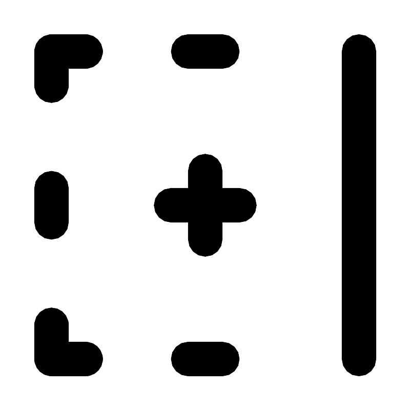 <path fill-rule="evenodd" d="M20,3 C20,2.44771525 20.4477153,2 21,2 C21.5522847,2 22,2.44771525 22,3 L22,21 C22,21.5522847 21.5522847,22 21,22 C20.4477153,22 20,21.5522847 20,21 L20,3 Z M9,12 C9,11.4477153 9.44771525,11 10,11 L11,11 L11,10 C11,9.44771525 11.4477153,9 12,9 C12.5522847,9 13,9.44771525 13,10 L13,11 L14,11 C14.5522847,11 15,11.4477153 15,12 C15,12.5522847 14.5522847,13 14,13 L13,13 L13,14 C13,14.5522847 12.5522847,15 12,15 C11.4477153,15 11,14.5522847 11,14 L11,13 L10,13 C9.44771525,13 9,12.5522847 9,12 Z M10,21 C10,20.4477153 10.4477153,20 11,20 L13,20 C13.5522847,20 14,20.4477153 14,21 C14,21.5522847 13.5522847,22 13,22 L11,22 C10.4477153,22 10,21.5522847 10,21 Z M10,3 C10,2.44771525 10.4477153,2 11,2 L13,2 C13.5522847,2 14,2.44771525 14,3 C14,3.55228475 13.5522847,4 13,4 L11,4 C10.4477153,4 10,3.55228475 10,3 Z M2,3 L2.00672773,2.88337887 C2.06004937,2.42429701 2.42429701,2.06004937 2.88337887,2.00672773 L3,2 L5,2 L5.11662113,2.00672773 C5.57570299,2.06004937 5.93995063,2.42429701 5.99327227,2.88337887 L6,3 L5.99327227,3.11662113 C5.93995063,3.57570299 5.57570299,3.93995063 5.11662113,3.99327227 L5,4 L4,4 L4,5 L3.99327227,5.11662113 C3.93550716,5.61395981 3.51283584,6 3,6 C2.48716416,6 2.06449284,5.61395981 2.00672773,5.11662113 L2,5 L2,3 Z M2,19 L2.00672773,18.8833789 C2.06449284,18.3860402 2.48716416,18 3,18 C3.47338693,18 3.86994729,18.3289337 3.97358929,18.7707092 L3.99327227,18.8833789 L4,19 L4,20 L5,20 L5.11662113,20.0067277 C5.53744617,20.0556059 5.87858412,20.3657483 5.97358929,20.7707092 L5.99327227,20.8833789 L6,21 L5.99327227,21.1166211 C5.9443941,21.5374462 5.63425172,21.8785841 5.22929083,21.9735893 L5.11662113,21.9932723 L5,22 L3,22 L2.88337887,21.9932723 C2.46255383,21.9443941 2.12141588,21.6342517 2.02641071,21.2292908 L2.00672773,21.1166211 L2,21 L2,19 Z M2,11 C2,10.4477153 2.44771525,10 3,10 C3.55228475,10 4,10.4477153 4,11 L4,13 C4,13.5522847 3.55228475,14 3,14 C2.44771525,14 2,13.5522847 2,13 L2,11 Z"/>