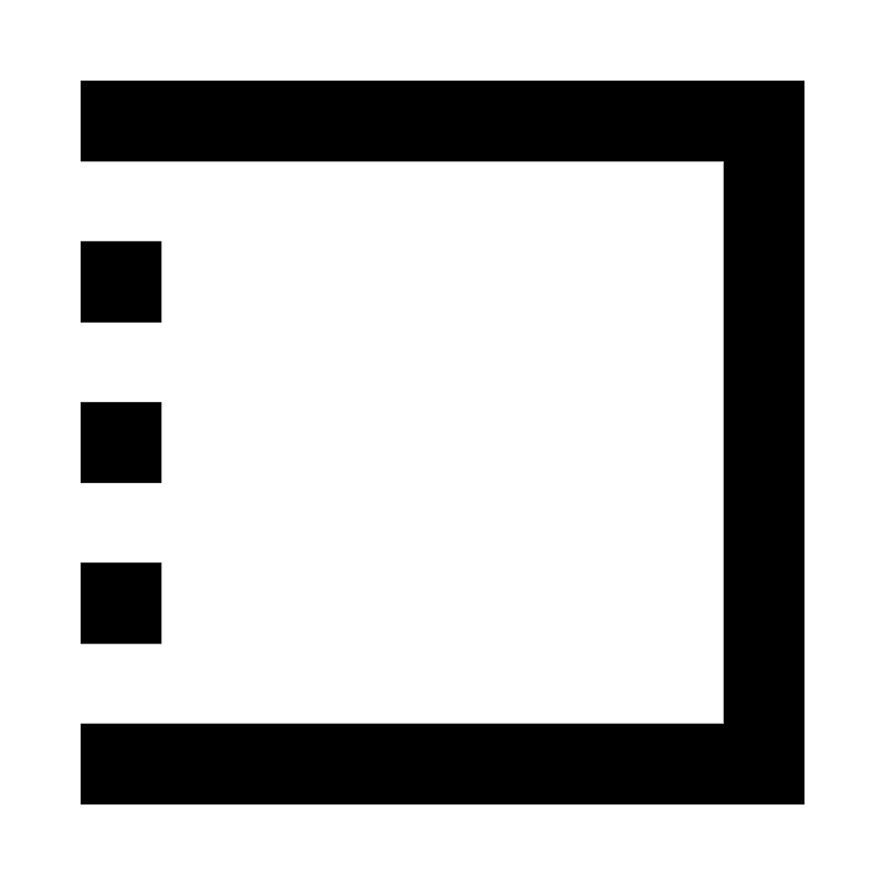 <svg fill="#000000" width="800px" height="800px" viewBox="0 0 22 22" xmlns="http://www.w3.org/2000/svg" id="memory-border-top-right-bottom"><path d="M4 12H2V10H4V12M4 16H2V14H4V16M4 8H2V6H4V8M2 4V2H20V20H2V18H18V4H2Z" /></svg>