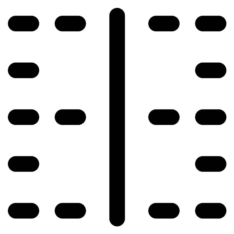 <path d="M1 1.5H2M10 1.5H11M13 1.5H14M13 4.5H14M13 7.5H14M10 7.5H11M13 10.5H14M13 13.5H14M10 13.5H11M4 13.5H5M1 13.5H2M1 10.5H2M1 7.5H2M4 7.5H5M1 4.5H2M4 1.5H5M7.5 1V14" stroke="#000000"/>