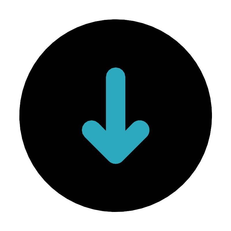 <svg fill="#000000" width="800px" height="800px" viewBox="0 0 24 24" id="bottom-circle" data-name="Flat Color" xmlns="http://www.w3.org/2000/svg" class="icon flat-color"><circle id="primary" cx="12" cy="12" r="10" style="fill: rgb(0, 0, 0);"></circle><path id="secondary" d="M15.21,12.79a1,1,0,0,0-1.42,0l-.79.8V8a1,1,0,0,0-2,0v5.59l-.79-.8a1,1,0,0,0-1.42,1.42l2.5,2.5a1,1,0,0,0,1.42,0l2.5-2.5A1,1,0,0,0,15.21,12.79Z" style="fill: rgb(44, 169, 188);"></path></svg>