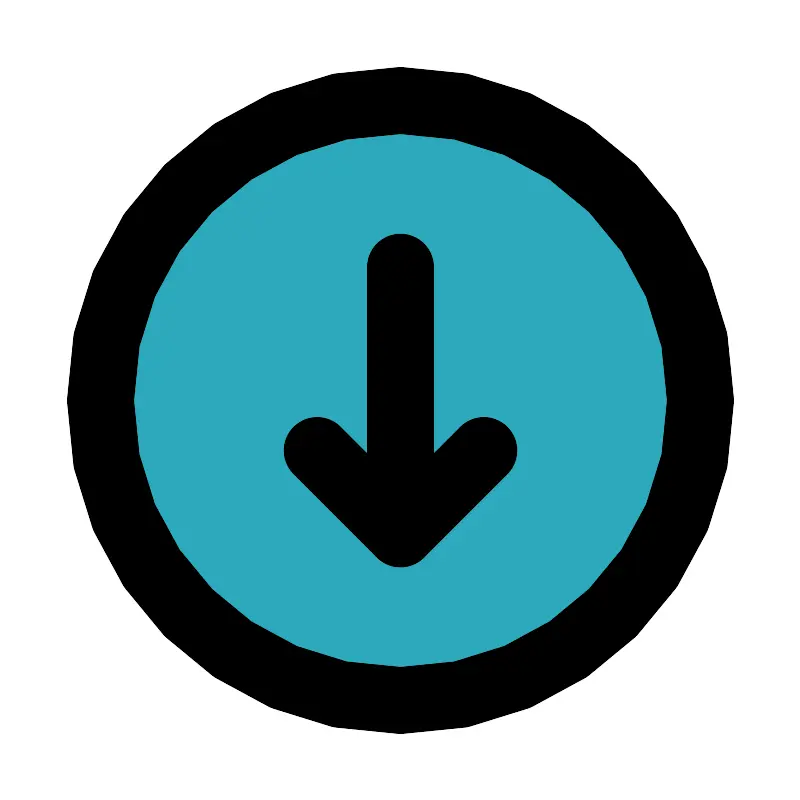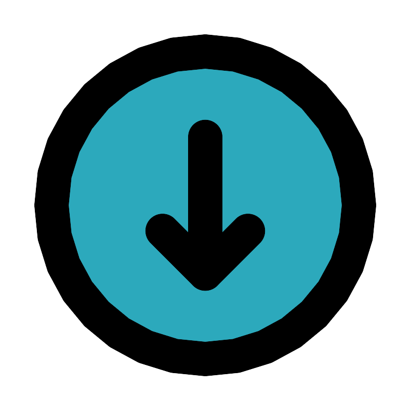 <svg fill="#000000" width="800px" height="800px" viewBox="0 0 24 24" id="bottom-circle" data-name="Flat Line" xmlns="http://www.w3.org/2000/svg" class="icon flat-line"><circle id="secondary" cx="12" cy="12" r="9" style="fill: rgb(44, 169, 188); stroke-width: 2;"></circle><polyline id="primary" points="14.5 13.5 12 16 9.5 13.5" style="fill: none; stroke: rgb(0, 0, 0); stroke-linecap: round; stroke-linejoin: round; stroke-width: 2;"></polyline><path id="primary-2" data-name="primary" d="M12,8v8m0,5a9,9,0,1,0-9-9A9,9,0,0,0,12,21Z" style="fill: none; stroke: rgb(0, 0, 0); stroke-linecap: round; stroke-linejoin: round; stroke-width: 2;"></path></svg>