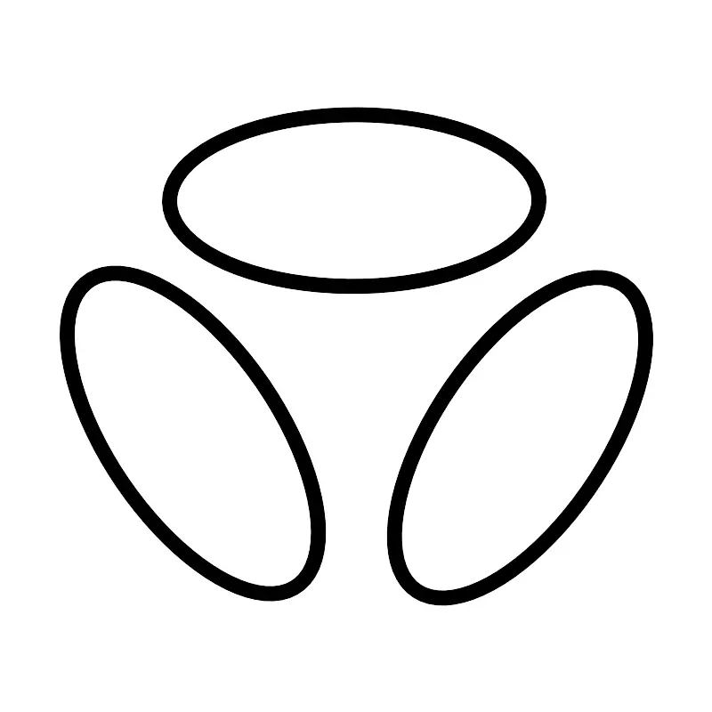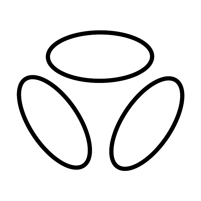 <svg width="800px" height="800px" viewBox="0 0 48 48" xmlns="http://www.w3.org/2000/svg"><defs><style>.a{fill:none;stroke:#000000;stroke-linecap:round;stroke-linejoin:round;}</style></defs><ellipse class="a" cx="12.9703" cy="29.193" rx="5.7863" ry="12.4521" transform="translate(-14.1425 12.3006) rotate(-34.12)"/><ellipse class="a" cx="35.0297" cy="29.4846" rx="12.452" ry="5.7863" transform="translate(-9.0288 41.9455) rotate(-55.8798)"/><ellipse class="a" cx="23.8537" cy="13.4916" rx="12.4521" ry="5.7863" transform="translate(-0.0617 0.1096) rotate(-0.263)"/></svg>