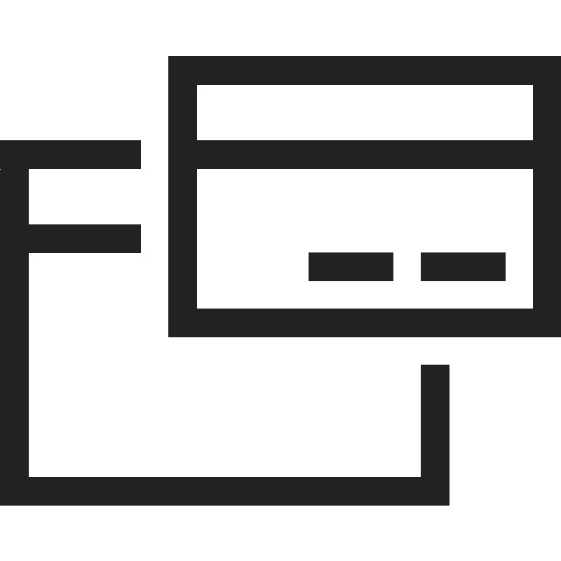 <path d="M 6 2 L 6 12 L 20 12 L 20 2 L 6 2 z M 7 3 L 19 3 L 19 5 L 7 5 L 7 3 z M 0 5 L 0 18 L 16 18 L 16 13 L 15 13 L 15 17 L 1 17 L 1 9 L 5 9 L 5 8 L 1 8 L 1 6 L 5 6 L 5 5 L 0 5 z M 7 6 L 19 6 L 19 11 L 7 11 L 7 6 z M 11 9 L 11 10 L 14 10 L 14 9 L 11 9 z M 15 9 L 15 10 L 18 10 L 18 9 L 15 9 z " style="fill:#222222; fill-opacity:1; stroke:none; stroke-width:0px;"/>