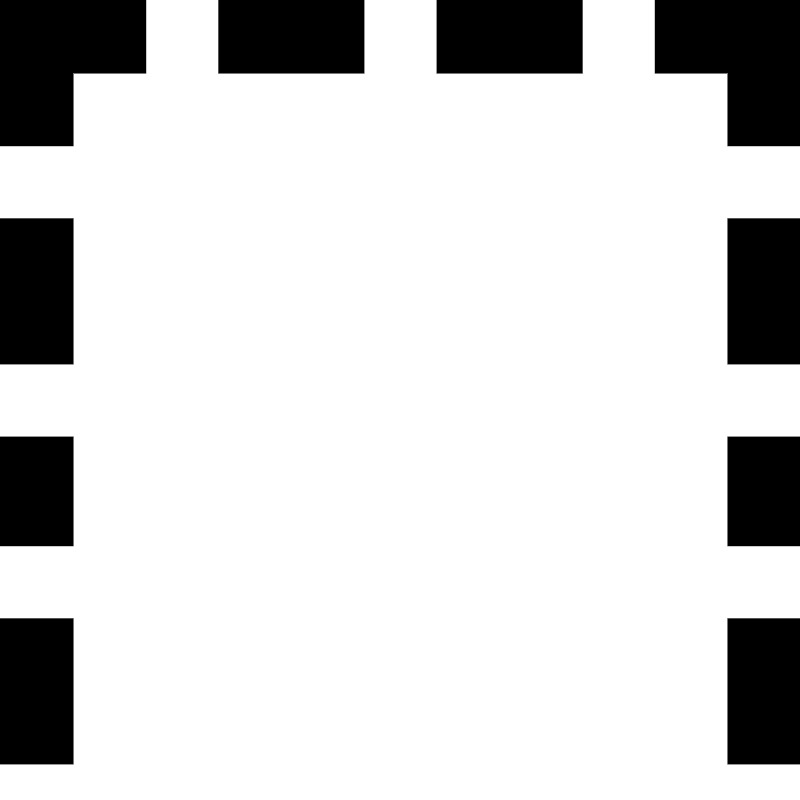 <svg fill="#000000" width="800px" height="800px" viewBox="0 0 22 22" xmlns="http://www.w3.org/2000/svg" id="memory-box-outer-light-dashed-up-left-right"><path d="M22 4H20V2H18V0H22V4M16 2H12V0H16V2M10 2H6V0H10V2M4 2H2V4H0V0H4V2M22 6V10H20V6H22M22 12V15H20V12H22M22 17V21H20V17H22M0 21V17H2V21H0M0 15V12H2V15H0M0 10V6H2V10H0Z" /></svg>