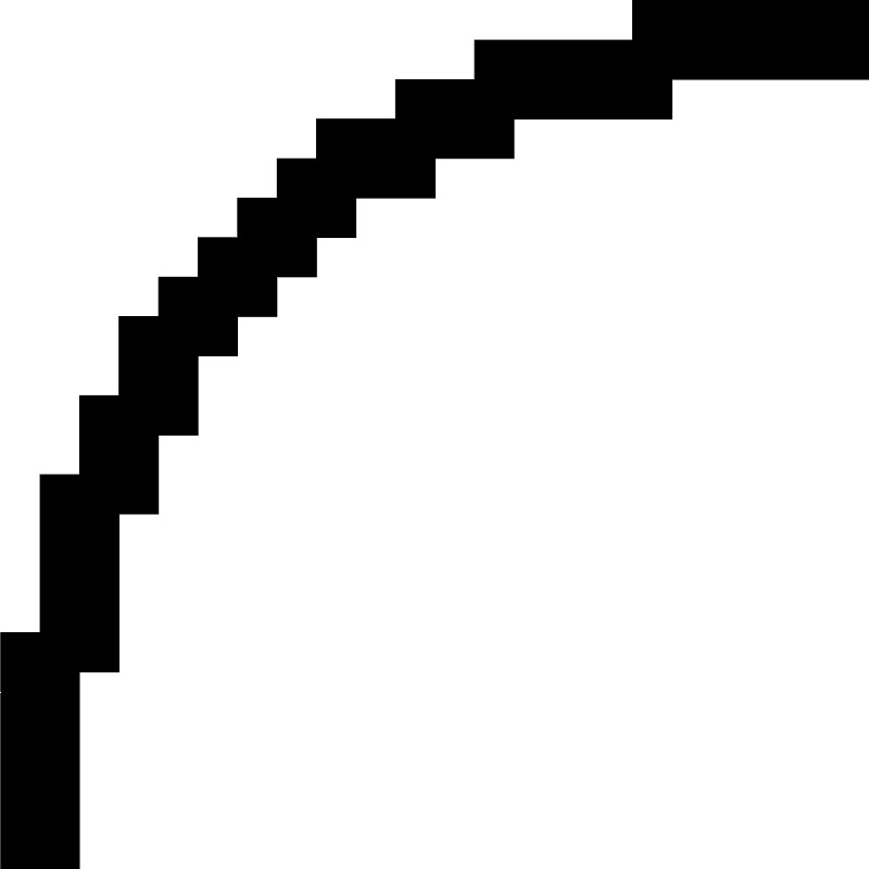 <svg fill="#000000" width="800px" height="800px" viewBox="0 0 22 22" xmlns="http://www.w3.org/2000/svg" id="memory-box-outer-light-round-up-left"><path d="M22 0V2H17V3H13V4H11V5H9V6H8V7H7V8H6V9H5V11H4V13H3V17H2V22H.004V16H1V12H2V10H3V8H4V7H5V6H6V5H7V4H8V3H10V2H12V1H16V0H22Z" /></svg>
