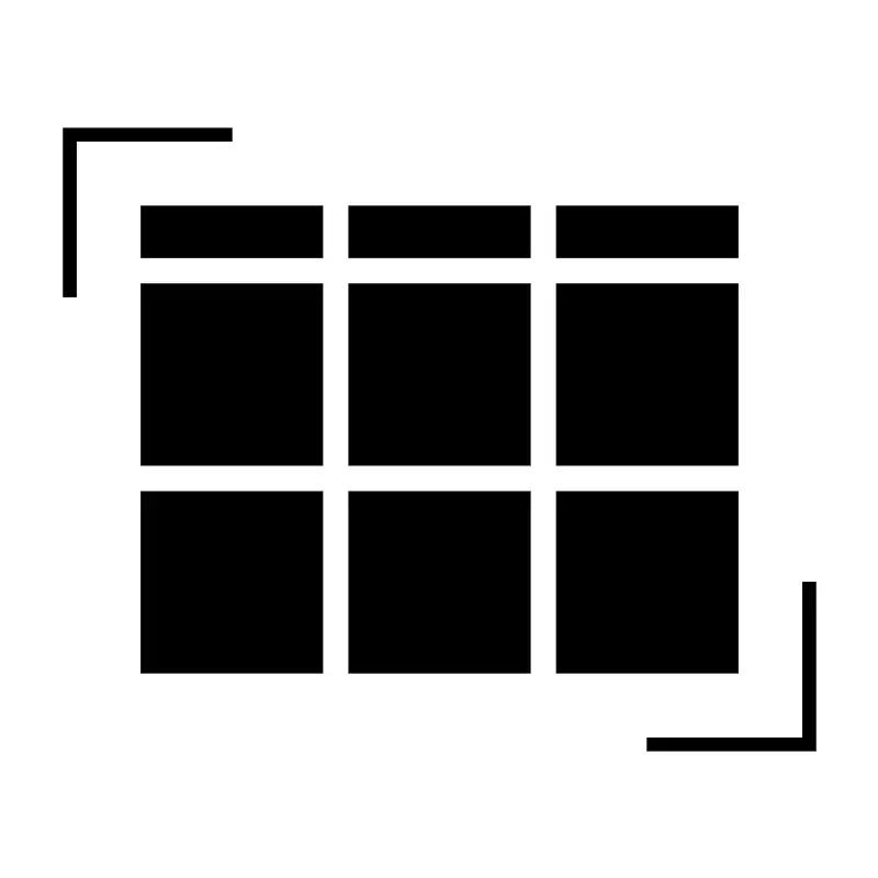 <svg fill="#000000" width="800px" height="800px" viewBox="0 0 14 14" role="img" focusable="false" aria-hidden="true" xmlns="http://www.w3.org/2000/svg"><path d="m 10.310345,11.75862 2.689655,0 0,0.206897 -2.689655,0 z m 2.482758,-2.482758 0.206897,0 0,2.689655 -0.206897,0 z M 1,2.034483 l 2.6896552,0 0,0.206896 -2.6896552,0 z m 0,0 0.2068965,0 0,2.689655 -0.2068965,0 z m 7.862069,1.241379 2.896552,0 0,0.827586 -2.896552,0 z m -3.3103449,0 2.8965518,0 0,0.827586 -2.8965518,0 z m -3.3103448,0 2.8965517,0 0,0.827586 -2.8965517,0 z m 6.6206897,4.551724 2.896552,0 0,2.896552 -2.896552,0 z m -6.6206897,0 2.8965517,0 0,2.896552 -2.8965517,0 z m 3.3103448,0 2.8965518,0 0,2.896552 -2.8965518,0 z m 3.3103449,-3.310345 2.896552,0 0,2.896552 -2.896552,0 z m -3.3103449,0 2.8965518,0 0,2.896552 -2.8965518,0 z m -3.3103448,0 2.8965517,0 0,2.896552 -2.8965517,0 z"/></svg>