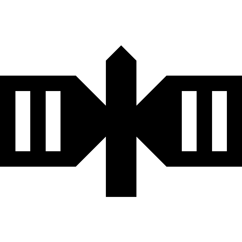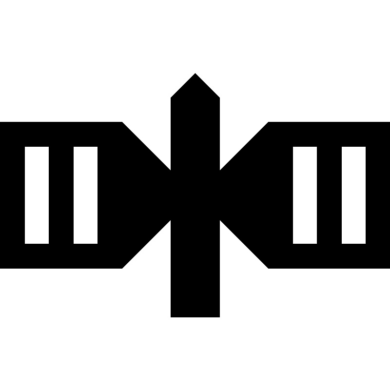<path d="M11,5L9,7V4L8,3L7,4v3L5,5H0v6h5l2-2v4h2V9l2,2h5V5H11z M2,10H1V6h1V10z M4,10H3V6h1V10z M13,10h-1V6h1V10z M15,10h-1V6h1 V10z" />