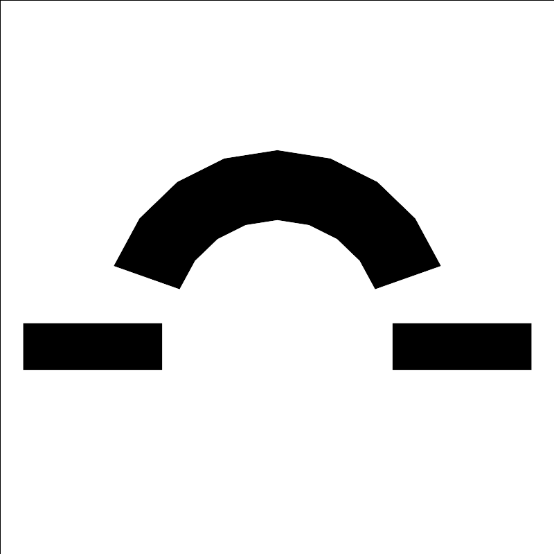 <svg width="800px" height="800px" viewBox="0 0 24 24" xmlns="http://www.w3.org/2000/svg"><rect width="24" height="24" fill="none" stroke="#000000" stroke-width="0" opacity="0.01"/><rect x="1" y="14" width="6" height="2"/><rect x="17" y="14" width="6" height="2"/><path d="M16.24,12.5a4.5,4.5,0,0,0-8.48,0l-2.83-1a7.5,7.5,0,0,1,14.14,0Z" transform="translate(0 0)"/></svg>