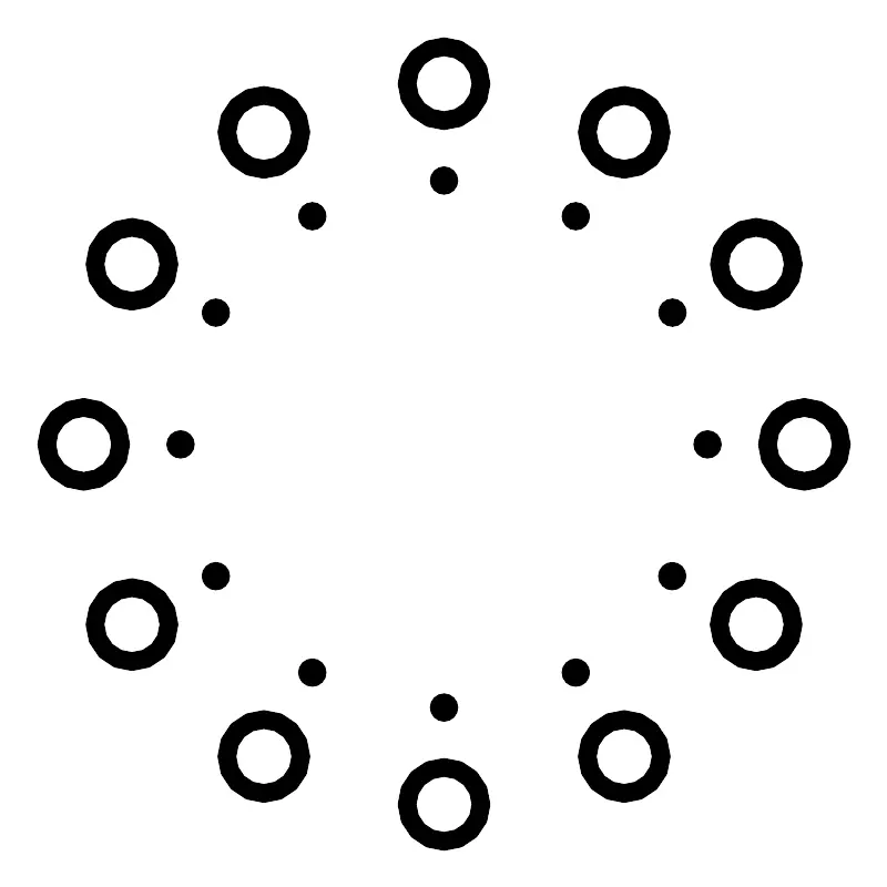 <svg width="800px" height="800px" viewBox="0 0 48 48" xmlns="http://www.w3.org/2000/svg"><defs><style>.a{fill:none;stroke:#000000;stroke-linecap:round;stroke-linejoin:round;}.b{fill:#000000;}</style></defs><circle class="a" cx="33.75" cy="7.1312" r="2"/><circle class="b" cx="31.1295" cy="11.6701" r="0.75"/><circle class="a" cx="40.8997" cy="14.2687" r="2"/><circle class="b" cx="36.3608" cy="16.8892" r="0.75"/><circle class="a" cx="43.5" cy="24.0187" r="2"/><circle class="b" cx="38.2589" cy="24.0187" r="0.75"/><circle class="a" cx="40.8875" cy="33.7687" r="2"/><circle class="b" cx="36.3486" cy="31.1482" r="0.75"/><circle class="a" cx="33.75" cy="40.9062" r="2"/><circle class="b" cx="31.1295" cy="36.3673" r="0.75"/><circle class="a" cx="24" cy="43.5" r="2"/><circle class="b" cx="24" cy="38.2589" r="0.75"/><circle class="a" cx="14.25" cy="40.9062" r="2"/><circle class="b" cx="16.8705" cy="36.3673" r="0.75"/><circle class="a" cx="7.1125" cy="33.7687" r="2"/><circle class="b" cx="11.6514" cy="31.1482" r="0.75"/><circle class="a" cx="4.5" cy="24.0187" r="2"/><circle class="b" cx="9.7411" cy="24.0187" r="0.75"/><circle class="a" cx="7.1125" cy="14.2687" r="2"/><circle class="b" cx="11.6514" cy="16.8892" r="0.75"/><circle class="a" cx="14.25" cy="7.1312" r="2"/><circle class="b" cx="16.8705" cy="11.6701" r="0.75"/><circle class="a" cx="24" cy="4.5" r="2"/><circle class="b" cx="24" cy="9.7411" r="0.75"/></svg>