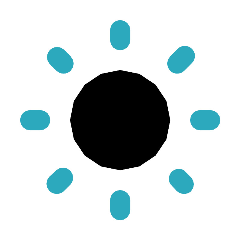<svg fill="#000000" width="800px" height="800px" viewBox="0 0 24 24" id="brightness" data-name="Flat Color" xmlns="http://www.w3.org/2000/svg" class="icon flat-color"><path id="secondary" d="M12,22a1,1,0,0,1-1-1V20a1,1,0,0,1,2,0v1A1,1,0,0,1,12,22Zm6.36-2.64a1,1,0,0,1-.7-.29L17,18.36A1,1,0,0,1,18.36,17l.71.71a1,1,0,0,1,0,1.41A1,1,0,0,1,18.36,19.36Zm-12.72,0a1,1,0,0,1-.71-.29,1,1,0,0,1,0-1.41L5.64,17a1,1,0,0,1,1.41,1.41l-.71.71A1,1,0,0,1,5.64,19.36ZM21,13H20a1,1,0,0,1,0-2h1a1,1,0,0,1,0,2ZM4,13H3a1,1,0,0,1,0-2H4a1,1,0,0,1,0,2ZM17.66,7.34A1,1,0,0,1,17,7.05a1,1,0,0,1,0-1.41l.71-.71a1,1,0,1,1,1.41,1.41l-.71.71A1,1,0,0,1,17.66,7.34Zm-11.32,0a1,1,0,0,1-.7-.29l-.71-.71A1,1,0,0,1,6.34,4.93l.71.71a1,1,0,0,1,0,1.41A1,1,0,0,1,6.34,7.34ZM12,5a1,1,0,0,1-1-1V3a1,1,0,0,1,2,0V4A1,1,0,0,1,12,5Z" style="fill: rgb(44, 169, 188);"></path><circle id="primary" cx="12" cy="12" r="5" style="fill: rgb(0, 0, 0);"></circle></svg>