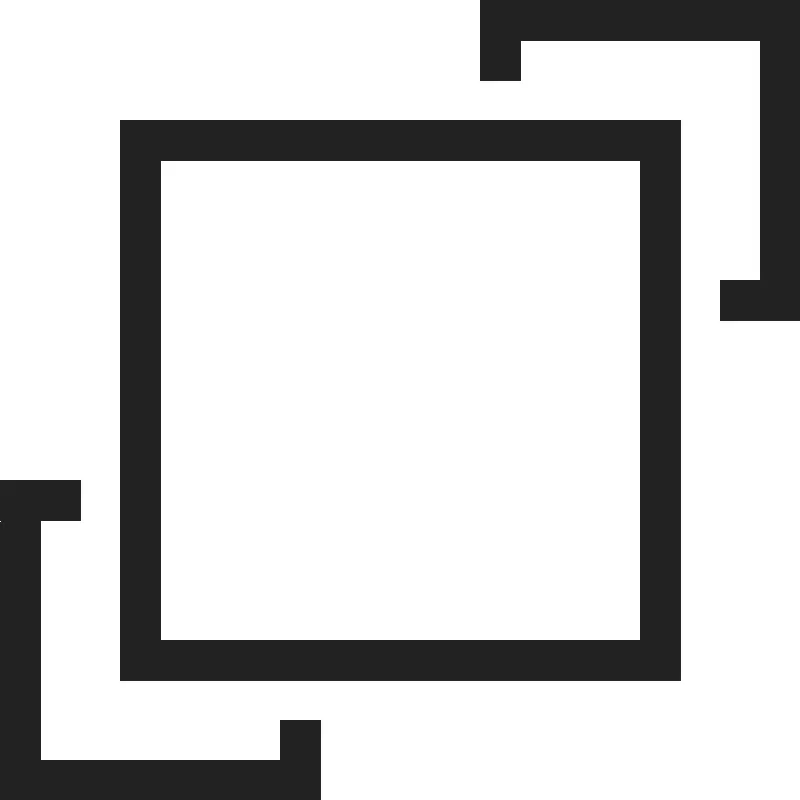 <path d="M 12 0 L 12 2 L 13 2 L 13 1 L 19 1 L 19 7 L 18 7 L 18 8 L 20 8 L 20 0 L 12 0 z M 3 3 L 3 17 L 17 17 L 17 3 L 3 3 z M 4 4 L 16 4 L 16 16 L 4 16 L 4 4 z M 0 12 L 0 20 L 8 20 L 8 18 L 7 18 L 7 19 L 1 19 L 1 13 L 2 13 L 2 12 L 0 12 z " style="fill:#222222; fill-opacity:1; stroke:none; stroke-width:0px;"/>