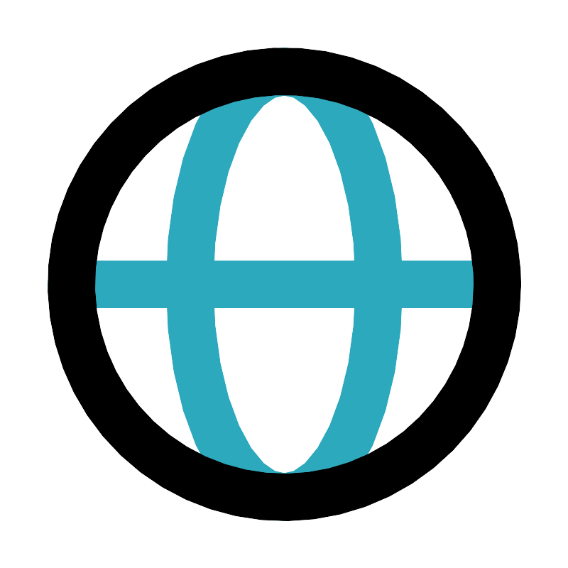 <svg fill="#000000" width="800px" height="800px" viewBox="0 0 24 24" id="browse" data-name="Line Color" xmlns="http://www.w3.org/2000/svg" class="icon line-color"><path id="secondary" d="M21,12H3m13,0c0-5-1.79-9-4-9S8,7,8,12s1.79,9,4,9S16,17,16,12Z" style="fill: none; stroke: rgb(44, 169, 188); stroke-linecap: round; stroke-linejoin: round; stroke-width: 2;"></path><circle id="primary" cx="12" cy="12" r="9" style="fill: none; stroke: rgb(0, 0, 0); stroke-linecap: round; stroke-linejoin: round; stroke-width: 2;"></circle></svg>