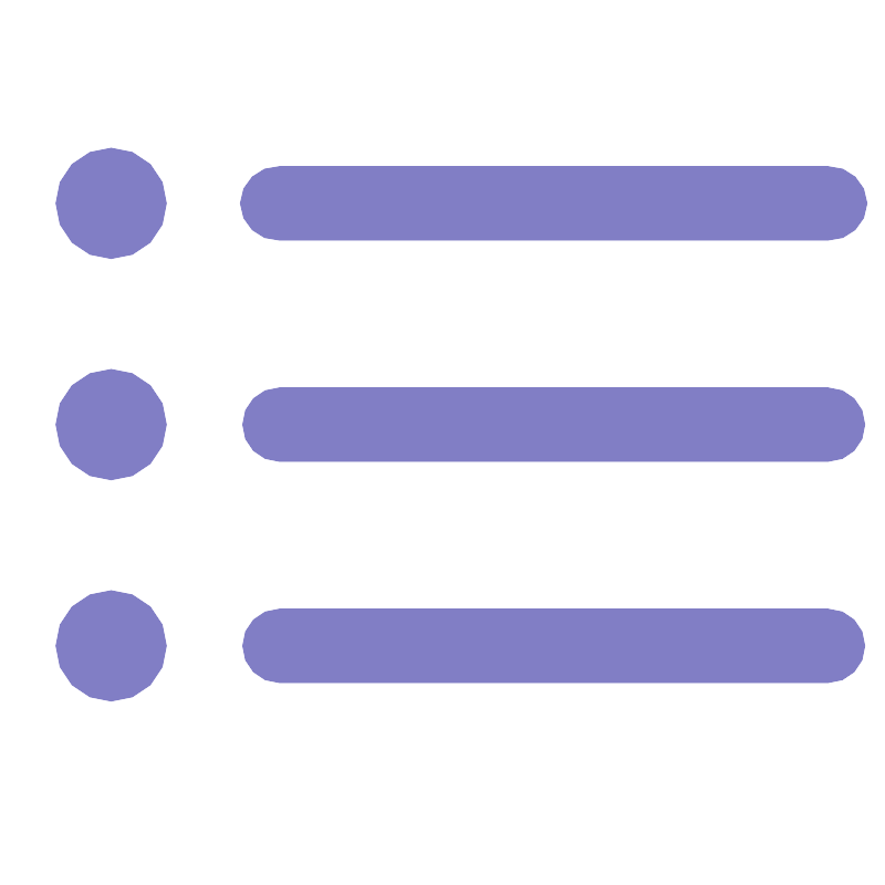 <svg width="800px" height="800px" viewBox="0 0 48 48" xmlns="http://www.w3.org/2000/svg"><title>70 Basic icons by Xicons.co</title><path d="M44.88,13H15.13A2.07,2.07,0,0,1,13,11a2.07,2.07,0,0,1,2.13-2H44.88A2.07,2.07,0,0,1,47,11,2.07,2.07,0,0,1,44.88,13Z" fill="#817ec5"/><path d="M44.88,25H15.13a2,2,0,1,1,0-4H44.88A2,2,0,1,1,44.88,25Z" fill="#817ec5"/><path d="M44.88,37H15.13a2,2,0,1,1,0-4H44.88A2,2,0,1,1,44.88,37Z" fill="#817ec5"/><circle cx="6" cy="11" r="3" fill="#817ec5"/><circle cx="6" cy="23" r="3" fill="#817ec5"/><circle cx="6" cy="35" r="3" fill="#817ec5"/></svg>