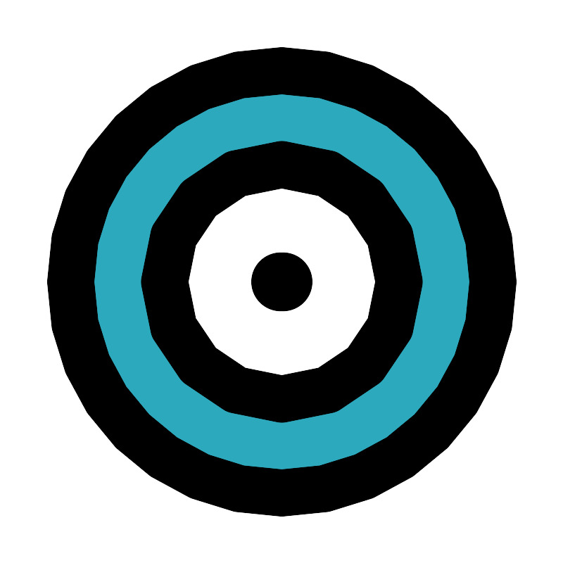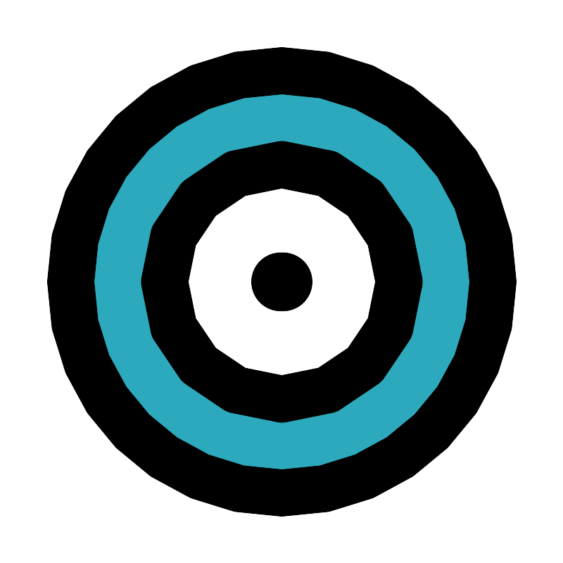 <svg fill="#000000" width="800px" height="800px" viewBox="0 0 24 24" id="bullseye" data-name="Flat Line" xmlns="http://www.w3.org/2000/svg" class="icon flat-line"><path id="secondary" d="M12,3a9,9,0,1,0,9,9A9,9,0,0,0,12,3Zm0,14a5,5,0,1,1,5-5A5,5,0,0,1,12,17Z" style="fill: rgb(44, 169, 188); stroke-width: 2;"></path><line id="primary-upstroke" x1="11.95" y1="12" x2="12.05" y2="12" style="fill: none; stroke: rgb(0, 0, 0); stroke-linecap: round; stroke-linejoin: round; stroke-width: 2.5;"></line><path id="primary" d="M21,12a9,9,0,1,1-9-9A9,9,0,0,1,21,12Zm-4,0a5,5,0,1,0-5,5A5,5,0,0,0,17,12Z" style="fill: none; stroke: rgb(0, 0, 0); stroke-linecap: round; stroke-linejoin: round; stroke-width: 2;"></path></svg>