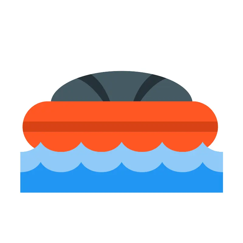 <svg width="800px" height="800px" viewBox="0 0 1024 1024" class="icon" version="1.1" xmlns="http://www.w3.org/2000/svg"><path d="M512 218.069333V341.333333" fill="none" /><path d="M405.333333 288a106.666667 74.666667 0 1 0 213.333334 0 106.666667 74.666667 0 1 0-213.333334 0Z" fill="none" /><path d="M213.333333 437.333333a298.666667 138.666667 0 1 0 597.333334 0 298.666667 138.666667 0 1 0-597.333334 0Z" fill="#455A64" /><path d="M448 448.021333L469.333333 448c-20.522667-71.829333-54.549333-112.064-86.826666-135.488-20.586667 4.608-39.914667 10.197333-57.536 16.768 63.445333 24.682667 106.304 91.797333 123.029333 118.741333zM576 448.021333L554.666667 448c20.522667-71.829333 54.549333-112.064 86.826666-135.488 20.586667 4.608 39.914667 10.197333 57.536 16.768-63.445333 24.682667-106.304 91.797333-123.029333 118.741333z" fill="#263238" /><path d="M917.333333 533.333333a106.666667 106.666667 0 0 1-106.666666 106.666667H201.706667a106.666667 106.666667 0 0 1-106.666667-106.666667 106.666667 106.666667 0 0 1 106.666667-106.666666H810.666667a106.666667 106.666667 0 0 1 106.666666 106.666666z" fill="#FF5722" /><path d="M95.04 533.333333c0 7.317333 0.746667 14.464 2.154667 21.354667H915.2a108.202667 108.202667 0 0 0-0.021333-42.666667H97.194667a106.346667 106.346667 0 0 0-2.154667 21.312z" fill="#D84315" /><path d="M938.666667 640c-64 0-85.333333-42.666667-85.333334-42.666667s-21.333333 42.666667-85.333333 42.666667-85.333333-42.666667-85.333333-42.666667-21.333333 42.666667-85.333334 42.666667-85.333333-42.666667-85.333333-42.666667-21.333333 42.666667-85.333333 42.666667-85.333333-42.666667-85.333334-42.666667-21.333333 42.666667-85.333333 42.666667-85.333333-42.666667-85.333333-42.666667-21.333333 42.666667-85.333334 42.666667v170.666667h853.333334v-170.666667z" fill="#90CAF9" /><path d="M938.666667 725.333333c-64 0-85.333333-42.666667-85.333334-42.666666s-21.333333 42.666667-85.333333 42.666666-85.333333-42.666667-85.333333-42.666666-21.333333 42.666667-85.333334 42.666666-85.333333-42.666667-85.333333-42.666666-21.333333 42.666667-85.333333 42.666666-85.333333-42.666667-85.333334-42.666666-21.333333 42.666667-85.333333 42.666666-85.333333-42.666667-85.333333-42.666666-21.333333 42.666667-85.333334 42.666666v85.333334h853.333334v-85.333334z" fill="#2196F3" /></svg>