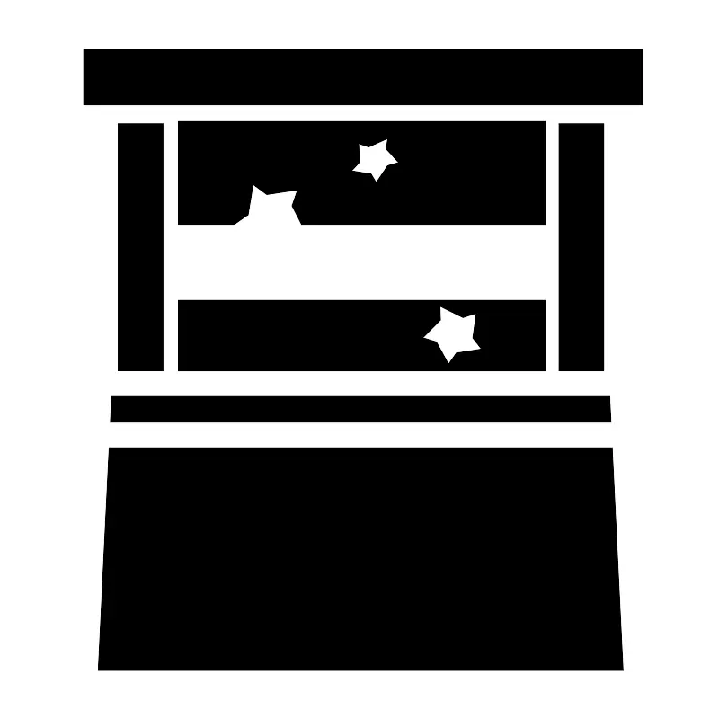 <svg width="800px" height="800px" viewBox="0 0 512 512" xmlns="http://www.w3.org/2000/svg"><path fill="#000000" d="M59.18 34.76v39.65H457.03V34.76zm67.5 51.391v73.396h39.994l-.084-.042 9.853-6.86 3.569-21.466 9.66 7.119 21.807-3.285-3.883 11.261 6.767 13.274h173.635V86.15zm-42.87 1.62v176.01h32V87.77zm313.89 0v176.01h32V87.77zM275.706 98.397l-1.055 7.39 8.748 9.638-7.693 2.17-6.674 9.935-1.383 2.06-3.7-6.05-13.727-2.225 5.408-5.908-.428-13.37 7.043 2.4zM126.68 213.48v50.385h261.318V213.48zm186.41 4.4l16.308 8.05 9.284-3.086-2.358 17.553 6.08 7.808-17.765 2.797-5.528 7.914-8.623-15.824-9.494-2.918 2.135-2.16 10.3-10.418zM79.105 281.932l-.904 18.49H434.84l-.904-18.49zm-1.783 36.49l-7.76 158.818H443.48l-7.76-158.818z"/></svg>