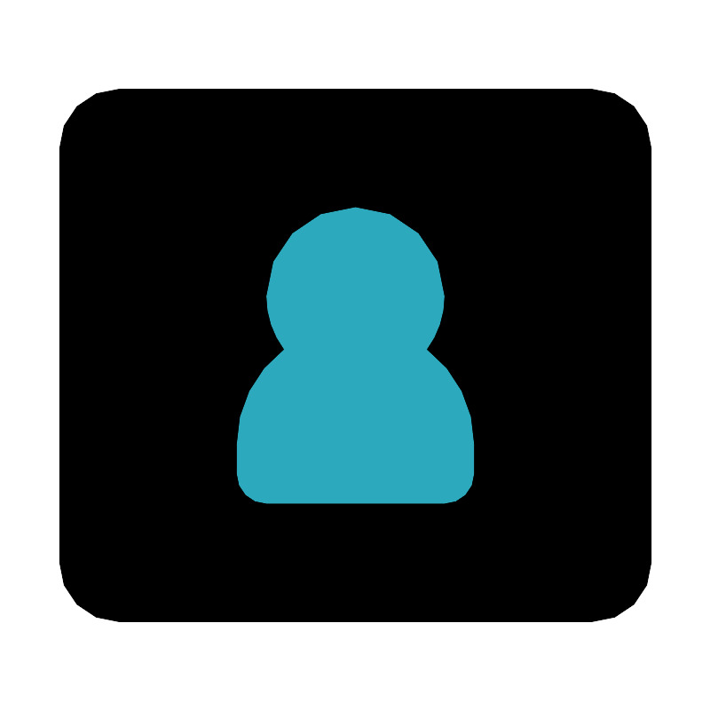 <svg fill="#000000" width="800px" height="800px" viewBox="0 0 24 24" id="business-card" data-name="Flat Color" xmlns="http://www.w3.org/2000/svg" class="icon flat-color"><rect id="primary" x="2" y="3" width="20" height="18" rx="2" style="fill: rgb(0, 0, 0);"></rect><path id="secondary" d="M14.4,11.8A3,3,0,0,0,15,10a3,3,0,0,0-6,0,3,3,0,0,0,.6,1.8A4,4,0,0,0,8,15v1a1,1,0,0,0,1,1h6a1,1,0,0,0,1-1V15A4,4,0,0,0,14.4,11.8Z" style="fill: rgb(44, 169, 188);"></path></svg>