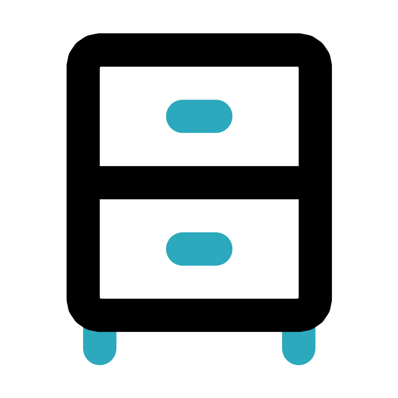 <svg fill="#000000" width="800px" height="800px" viewBox="0 0 24 24" id="cabinet" data-name="Line Color" xmlns="http://www.w3.org/2000/svg" class="icon line-color"><path id="secondary" d="M11,7h2m-2,8h2M6,19v2m12-2v2" style="fill: none; stroke: rgb(44, 169, 188); stroke-linecap: round; stroke-linejoin: round; stroke-width: 2;"></path><path id="primary" d="M5,11H19V4a1,1,0,0,0-1-1H6A1,1,0,0,0,5,4Zm1,8H18a1,1,0,0,0,1-1V11H5v7A1,1,0,0,0,6,19Z" style="fill: none; stroke: rgb(0, 0, 0); stroke-linecap: round; stroke-linejoin: round; stroke-width: 2;"></path></svg>