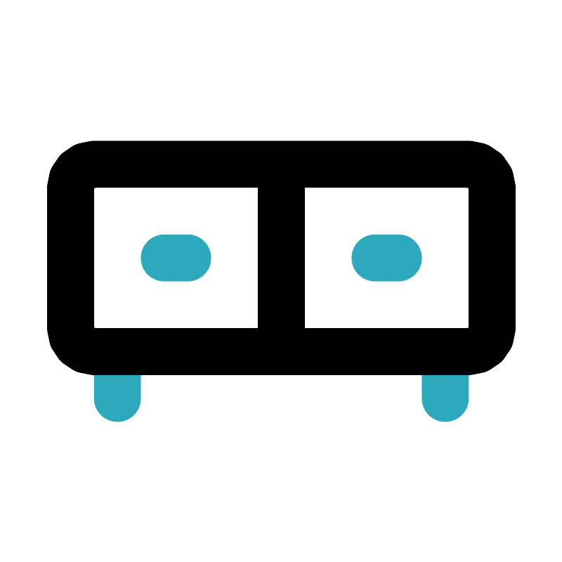 <svg fill="#000000" width="800px" height="800px" viewBox="0 0 24 24" id="cabinet-2" data-name="Line Color" xmlns="http://www.w3.org/2000/svg" class="icon line-color"><path id="secondary" d="M5,15v2m14-2v2M7,11H8m8,0h1" style="fill: none; stroke: rgb(44, 169, 188); stroke-linecap: round; stroke-linejoin: round; stroke-width: 2;"></path><path id="primary" d="M4,15H20a1,1,0,0,0,1-1V8a1,1,0,0,0-1-1H4A1,1,0,0,0,3,8v6A1,1,0,0,0,4,15Zm0,0h8V7H4A1,1,0,0,0,3,8v6A1,1,0,0,0,4,15Z" style="fill: none; stroke: rgb(0, 0, 0); stroke-linecap: round; stroke-linejoin: round; stroke-width: 2;"></path></svg>