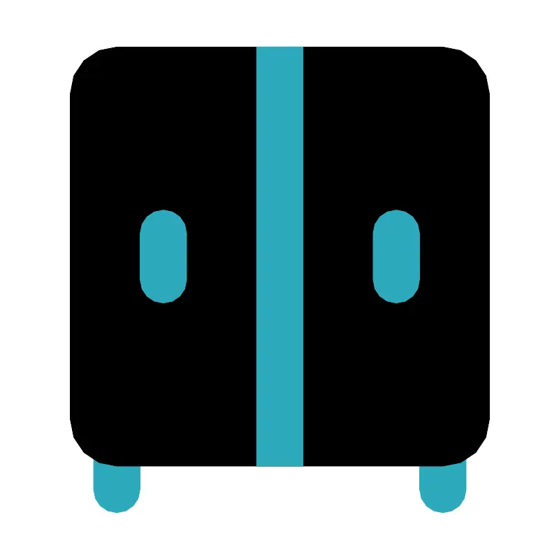 <svg fill="#000000" width="800px" height="800px" viewBox="0 0 24 24" id="cabinet-4" data-name="Flat Color" xmlns="http://www.w3.org/2000/svg" class="icon flat-color"><path id="secondary" d="M19,22a1,1,0,0,1-1-1V19a1,1,0,0,1,2,0v2A1,1,0,0,1,19,22ZM6,21V19a1,1,0,0,0-2,0v2a1,1,0,0,0,2,0Z" style="fill: rgb(44, 169, 188);"></path><rect id="primary" x="3" y="2" width="18" height="18" rx="2" style="fill: rgb(0, 0, 0);"></rect><path id="secondary-2" data-name="secondary" d="M17,13a1,1,0,0,1-1-1V10a1,1,0,0,1,2,0v2A1,1,0,0,1,17,13ZM8,12V10a1,1,0,0,0-2,0v2a1,1,0,0,0,2,0ZM13,2H11V20h2Z" style="fill: rgb(44, 169, 188);"></path></svg>
