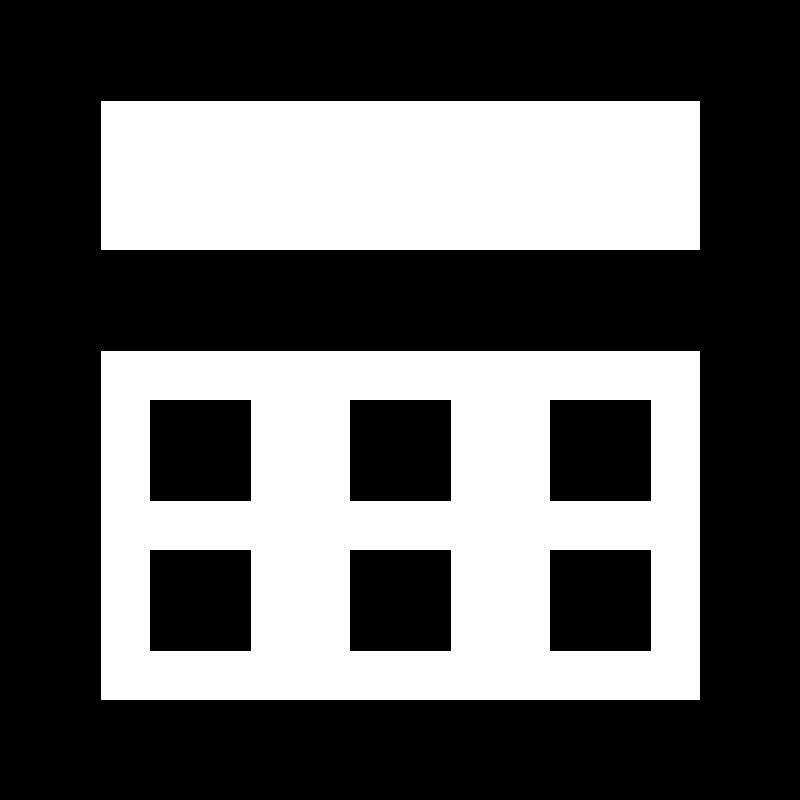 <path d="M0 0h16v16H0V0zm2 2v12h12V2H2zm0 3h12v2H2V5zm1 3h2v2H3V8zm0 3h2v2H3v-2zm4-3h2v2H7V8zm0 3h2v2H7v-2zm4-3h2v2h-2V8zm0 3h2v2h-2v-2z" fill-rule="evenodd"/>