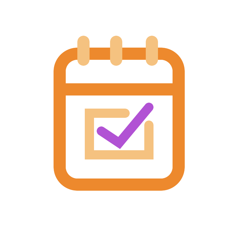 <svg width="800px" height="800px" viewBox="0 0 1024 1024" class="icon" version="1.1" xmlns="http://www.w3.org/2000/svg"><path d="M691.2 204.8H332.8a102.4 102.4 0 0 0-102.4 102.4v409.6a102.4 102.4 0 0 0 102.4 102.4h358.4a102.4 102.4 0 0 0 102.4-102.4V307.2a102.4 102.4 0 0 0-102.4-102.4z m-358.4 51.2h358.4a51.2 51.2 0 0 1 51.2 51.2v409.6a51.2 51.2 0 0 1-51.2 51.2H332.8a51.2 51.2 0 0 1-51.2-51.2V307.2a51.2 51.2 0 0 1 51.2-51.2z" fill="#ED892D" /><path d="M358.4 153.6a25.6 25.6 0 0 1 25.4208 22.6048L384 179.2v76.8a25.6 25.6 0 0 1-51.0208 2.9952L332.8 256V179.2a25.6 25.6 0 0 1 25.6-25.6zM499.2 153.6a25.6 25.6 0 0 1 25.4208 22.6048L524.8 179.2v76.8a25.6 25.6 0 0 1-51.0208 2.9952L473.6 256V179.2a25.6 25.6 0 0 1 25.6-25.6zM652.8 153.6a25.6 25.6 0 0 1 25.4208 22.6048L678.4 179.2v76.8a25.6 25.6 0 0 1-51.0208 2.9952L627.2 256V179.2a25.6 25.6 0 0 1 25.6-25.6z" fill="#F5C280" /><path d="M793.6 358.4v51.2H256v-51.2z" fill="#ED892D" /><path d="M537.6 467.2a19.2 19.2 0 0 1 2.6112 38.2208L537.6 505.6h-134.4v140.8h217.6V537.6a19.2 19.2 0 0 1 16.5888-19.0208L640 518.4a19.2 19.2 0 0 1 19.0208 16.5888l0.1792 2.6112v147.2h-294.4v-217.6H537.6z" fill="#F5C280" /><path d="M625.2544 448.512a19.2 19.2 0 0 1 31.1552 22.272l-1.664 2.304-139.0336 166.8608-91.1616-60.7744a19.2 19.2 0 0 1 18.816-33.3568l2.4832 1.408 62.4384 41.6 116.9664-140.3136z" fill="#B152D4" /></svg>