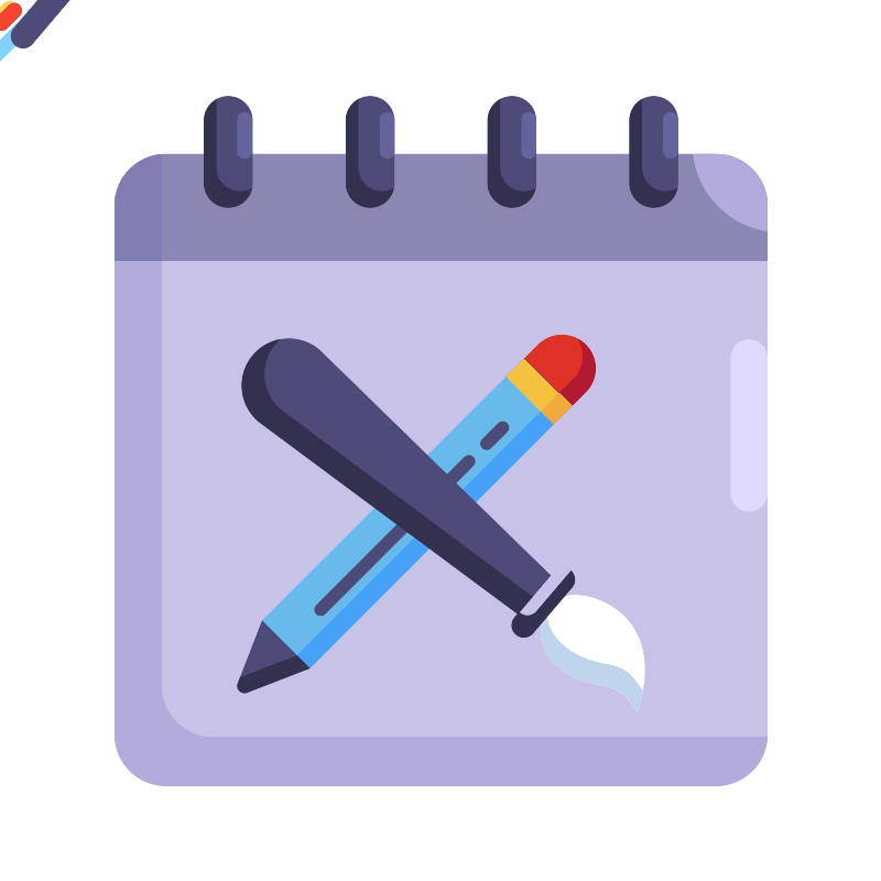 <svg width="800px" height="800px" viewBox="0 0 2050 2050" data-name="Layer 2" id="Layer_2" xmlns="http://www.w3.org/2000/svg"><defs><style>.cls-1{fill:#c8c2e9;}.cls-2{fill:#8a87b2;}.cls-3{fill:#4d4c78;}.cls-4{fill:#323150;}.cls-5{fill:#67baeb;}.cls-6{fill:#de3226;}.cls-7{fill:#231f20;}.cls-8{fill:#f4c23f;}.cls-9{fill:#46a1f8;}.cls-10{fill:#b11a31;}.cls-11{fill:#f4a93f;}.cls-12{fill:#83d0fb;}.cls-13{fill:#fad564;}.cls-14{fill:#f44533;}.cls-15{fill:#ffffff;}.cls-16{fill:#bed5eb;}.cls-17{fill:#b2abdb;}.cls-18{fill:#807db2;}.cls-19{fill:#dfdafd;}.cls-20{fill:#64639c;}</style></defs><title/><rect class="cls-1" height="1469.32" rx="119.1" ry="119.1" width="1518.2" x="265.9" y="357.7"/><path class="cls-2" d="M1784.1,605.3V476.8A119.1,119.1,0,0,0,1665,357.7H385A119.1,119.1,0,0,0,265.9,476.8V605.3Z"/><rect class="cls-3" height="258.29" rx="56" ry="56" width="111.9" x="474" y="223"/><rect class="cls-3" height="258.29" rx="56" ry="56" width="111.9" x="804" y="223"/><rect class="cls-3" height="258.29" rx="56" ry="56" width="111.9" x="1134" y="223"/><rect class="cls-3" height="258.29" rx="56" ry="56" width="111.9" x="1464" y="223"/><path class="cls-4" d="M557.7,444.2h0a55.9,55.9,0,0,1-55.9-55.9V241.9a54.1,54.1,0,0,1,1.3-12.1A56.1,56.1,0,0,0,474,278.9V425.3a56,56,0,0,0,56,55.9h0a55.9,55.9,0,0,0,54.6-43.8A56.2,56.2,0,0,1,557.7,444.2Z"/><path class="cls-4" d="M887.8,444.2h0a55.9,55.9,0,0,1-56-55.9V241.9a60.6,60.6,0,0,1,1.3-12.1A56.1,56.1,0,0,0,804,278.9V425.3a56,56,0,0,0,56,55.9h0a55.8,55.8,0,0,0,54.6-43.8A56.1,56.1,0,0,1,887.8,444.2Z"/><path class="cls-4" d="M1217.8,444.2h0a56,56,0,0,1-56-55.9V241.9a60.6,60.6,0,0,1,1.3-12.1,56.1,56.1,0,0,0-29.1,49.1V425.3a56,56,0,0,0,56,55.9h0a55.8,55.8,0,0,0,54.6-43.8A56.1,56.1,0,0,1,1217.8,444.2Z"/><path class="cls-4" d="M1547.8,444.2h0a56,56,0,0,1-56-55.9V241.9a60.6,60.6,0,0,1,1.3-12.1,56.1,56.1,0,0,0-29.1,49.1V425.3a56,56,0,0,0,56,55.9h0a56,56,0,0,0,54.7-43.8A56.8,56.8,0,0,1,1547.8,444.2Z"/><polygon class="cls-5" points="1291.8 980.4 718.8 1553.5 608.9 1443.6 1177.3 875.1 1287.2 985 1291.8 980.4"/><path class="cls-6" d="M1251.4,801a77.8,77.8,0,0,1,109.9,0h0a77.6,77.6,0,0,1,0,109.9l-31.7,31.8L1219.7,832.8Z"/><polygon class="cls-7" points="1177.3 875.1 1219.7 832.8 1219.7 832.8 1177.3 875.1 1177.3 875.1"/><polygon class="cls-7" points="1291.8 980.4 1329.6 942.7 1329.6 942.7 1291.8 980.4"/><polygon class="cls-8" points="1287.2 985 1177.3 875.1 1219.7 832.8 1329.6 942.7 1291.8 980.4 1287.2 985"/><path class="cls-3" d="M718.8,1553.5,608.9,1443.6l-56.3,145.1c-5.1,13.2,7.9,26.1,21.1,21Z"/><polygon class="cls-9" points="718.8 1553.5 689.8 1524.5 1258.3 956.1 1287.2 985 1291.8 980.4 718.8 1553.5"/><path class="cls-10" d="M1219.7,832.8h0l80.9,80.9,31.8-31.7a77.8,77.8,0,0,0,12.5-93.5,75,75,0,0,1,16.4,12.5h0a77.6,77.6,0,0,1,0,109.9l-31.7,31.8Z"/><polygon class="cls-11" points="1258.3 956.1 1262.8 951.5 1300.6 913.7 1329.6 942.7 1291.8 980.4 1287.2 985 1258.3 956.1"/><path class="cls-4" d="M552.6,1588.7l5-12.9,132.2-51.3,29,29-145.1,56.2C560.5,1614.8,547.5,1601.9,552.6,1588.7Z"/><path class="cls-3" d="M1103.9,1072.5a14.1,14.1,0,0,0-24.1-9.9L735.1,1407.3a14.1,14.1,0,1,0,19.9,20l344.8-344.8A14.2,14.2,0,0,0,1103.9,1072.5Z"/><path class="cls-3" d="M1182.6,993.9a14.1,14.1,0,0,0-24.1-10l-37.2,37.2a14.1,14.1,0,0,0,20,19.9l37.2-37.2A14,14,0,0,0,1182.6,993.9Z"/><rect class="cls-12" height="196.38" rx="17.3" ry="17.3" transform="translate(1121.5 -230.2) rotate(45)" width="34.7" x="821.3" y="1140.4"/><rect class="cls-12" height="74.88" rx="17.3" ry="17.3" transform="translate(1070.9 -352.3) rotate(45)" width="34.7" x="943.3" y="1079.1"/><rect class="cls-13" height="43.1" rx="17.3" ry="17.3" transform="translate(968 -600.7) rotate(45)" width="34.7" x="1191.8" y="846.5"/><rect class="cls-14" height="75.62" rx="17.3" ry="17.3" transform="translate(949.1 -650.7) rotate(45)" width="34.7" x="1242.6" y="782.5"/><path class="cls-15" d="M1306.2,1393.1l-38.6,45.2c-32.7,57.7,21.1,135.9,126.6,153.8,60.4,8,70.2,43.1,87.7,62.4C1563.1,1396.7,1321,1362.3,1306.2,1393.1Z"/><path class="cls-16" d="M1406.9,1543.9c-80.1-13.7-130.4-62.1-135.6-109.8l-3.7,4.2c-32.7,57.7,21.1,135.9,126.6,153.8,60.4,8,70.2,43.1,87.7,62.4a377.9,377.9,0,0,0,12.1-48.9C1476.9,1586.2,1466.7,1551.8,1406.9,1543.9Z"/><path class="cls-3" d="M587.9,825.2h0a108.9,108.9,0,0,1,158.9-7.3l532.8,520-76,89.1L605.9,983.3A108.9,108.9,0,0,1,587.9,825.2Z"/><path class="cls-4" d="M657.5,956.6a108.9,108.9,0,0,1-18-158.1h0c2.8-3.3,5.8-6.3,8.8-9.2a108.6,108.6,0,0,0-60.4,35.9h0a108.9,108.9,0,0,0,18,158.1L1203.6,1427l34-39.8Z"/><rect class="cls-3" height="56.03" rx="28" ry="28" transform="translate(3148.2 1348.1) rotate(130.4)" width="195.6" x="1165.2" y="1372.6"/><path class="cls-4" d="M1327.6,1327.3l-80.2,94.1a28,28,0,0,1-39.5,3.1h0l-1.2-1.1-10.3,12.2a27.9,27.9,0,0,0,3.1,39.5h0a28,28,0,0,0,39.5-3.2l90.5-106.2A28,28,0,0,0,1327.6,1327.3Z"/><path class="cls-17" d="M1774.1,1714.4H494a119.1,119.1,0,0,1-119.1-119.1V364.2c0-2,.1-4.1.2-6.1A119.2,119.2,0,0,0,265.9,476.8V1707.9A119.1,119.1,0,0,0,385,1827H1665a119.1,119.1,0,0,0,119-113C1780.7,1714.3,1777.4,1714.4,1774.1,1714.4Z"/><path class="cls-18" d="M374.9,364.2c0-2,.1-4.1.2-6.1A119.2,119.2,0,0,0,265.9,476.8V605.3h109Z"/><rect class="cls-19" height="399.13" rx="42.2" ry="42.2" width="84.3" x="1699.6" y="789.3"/><rect class="cls-20" height="107.3" rx="16.6" ry="16.6" width="33.2" x="883.1" y="260.2"/><rect class="cls-20" height="107.3" rx="16.6" ry="16.6" width="33.2" x="1212.7" y="260.2"/><rect class="cls-20" height="107.3" rx="16.6" ry="16.6" width="33.2" x="1542.7" y="260.2"/><rect class="cls-20" height="107.3" rx="16.6" ry="16.6" width="33.2" x="551.4" y="260.2"/><path class="cls-17" d="M1665,357.7h-53a205,205,0,0,0,172.1,178.7V476.8A119.1,119.1,0,0,0,1665,357.7Z"/></svg>