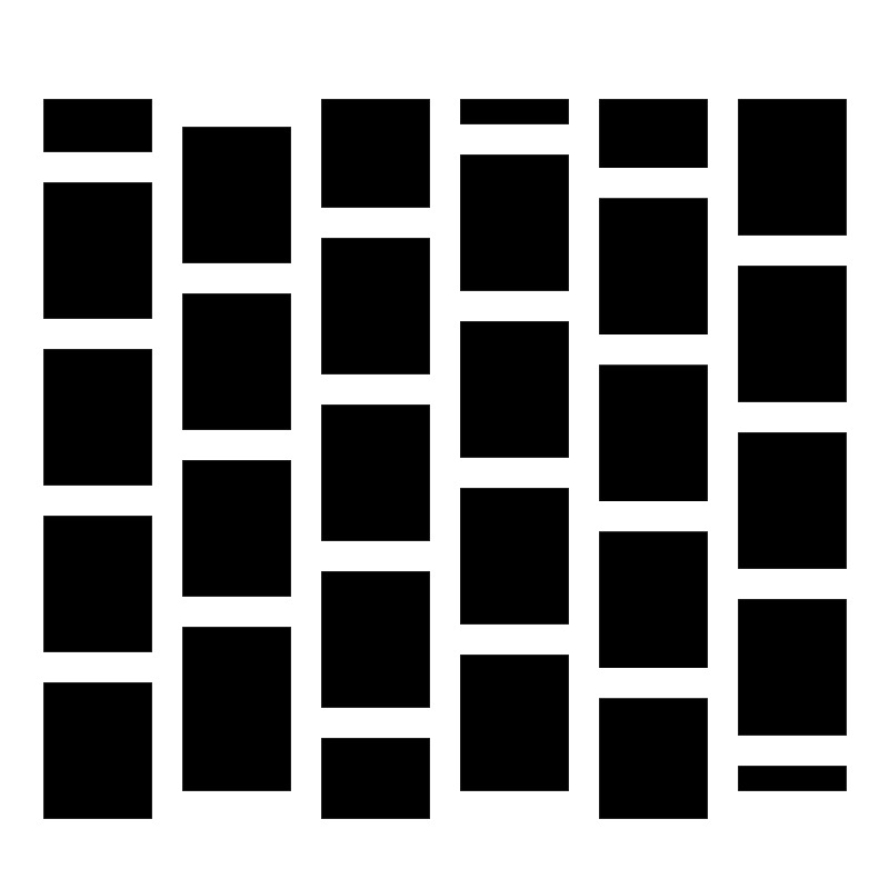 <svg width="800px" height="800px" viewBox="0 0 512 512" xmlns="http://www.w3.org/2000/svg"><path fill="#000000" d="M25 57v30h62V57H25zm160 0v62h62V57h-62zm80 0v14h62V57h-62zm80 0v39h62V57h-62zm80 0v78h62V57h-62zM105 73v78h62V73h-62zm160 16v78h62V89h-62zM25 105v78h62v-78H25zm320 9v78h62v-78h-62zm-160 23v78h62v-78h-62zm240 16v78h62v-78h-62zm-320 16v78h62v-78h-62zm160 16v78h62v-78h-62zM25 201v78h62v-78H25zm320 9v78h62v-78h-62zm-160 23v78h62v-78h-62zm240 16v78h62v-78h-62zm-320 16v78h62v-78h-62zm160 16v78h62v-78h-62zM25 297v78h62v-78H25zm320 9v78h62v-78h-62zm-160 23v78h62v-78h-62zm240 16v78h62v-78h-62zm-320 16v94h62v-94h-62zm160 16v78h62v-78h-62zM25 393v78h62v-78H25zm320 9v69h62v-69h-62zm-160 23v46h62v-46h-62zm240 16v14h62v-14h-62z"/></svg>