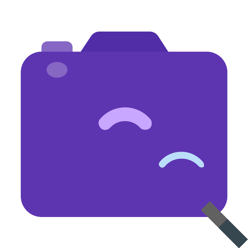 <svg width="800px" height="800px" viewBox="0 0 1024 1024" class="icon" version="1.1" xmlns="http://www.w3.org/2000/svg"><path d="M722.612299 257.778887H302.922705L375.356442 149.128282c8.521616-12.782424 21.30404-19.173636 36.216869-19.173636h204.518786c14.912828 0 27.695252 6.391212 36.216869 19.173636l70.303333 108.650605z" fill="#512DA8" /><path d="M298.661897 234.344443H170.837656V195.997171C170.837656 181.084342 181.489676 170.432322 196.402504 170.432322h76.694545c14.912828 0 25.564848 10.65202 25.564848 25.564849V234.344443z" fill="#8667C4" /><path d="M852.566944 894.769692H170.837656c-46.868889 0-85.216161-38.347273-85.216162-85.216161V298.256564c0-46.868889 38.347273-85.216161 85.216162-85.216161h681.729288c46.868889 0 85.216161 38.347273 85.216162 85.216161v511.296967c0 46.868889-38.347273 85.216161-85.216162 85.216161z" fill="#5E35B1" /><path d="M511.7023 553.905047m-255.648483 0a255.648483 255.648483 0 1 0 511.296966 0 255.648483 255.648483 0 1 0-511.296966 0Z" fill="#512DA8" /><path d="M511.7023 553.905047m-191.736362 0a191.736363 191.736363 0 1 0 383.472725 0 191.736363 191.736363 0 1 0-383.472725 0Z" fill="#B388FF" /><path d="M829.388149 867.138351l36.131652-36.152956 156.648608 156.648608-36.152956 36.131653z" fill="#616161" /><path d="M746.046743 745.64141m-213.040403 0a213.040403 213.040403 0 1 0 426.080806 0 213.040403 213.040403 0 1 0-426.080806 0Z" fill="#616161" /><path d="M901.672757 939.636l36.152957-36.131652 84.363999 84.342696-36.17426 36.152956z" fill="#37474F" /><path d="M746.046743 745.64141m-170.432322 0a170.432322 170.432322 0 1 0 340.864644 0 170.432322 170.432322 0 1 0-340.864644 0Z" fill="#64B5F6" /><path d="M837.654116 668.946865c-23.434444-27.695252-55.390505-42.608081-89.476969-42.608081s-68.172929 14.912828-89.476969 42.608081c-4.260808 6.391212-4.260808 12.782424 2.130404 19.173636 6.391212 4.260808 12.782424 4.260808 19.173636-2.130404 17.043232-21.30404 42.608081-31.95606 70.303333-31.95606s53.260101 12.782424 70.303333 31.95606c2.130404 2.130404 6.391212 4.260808 10.65202 4.260808 2.130404 0 6.391212 0 8.521616-2.130404 2.130404-4.260808 2.130404-12.782424-2.130404-19.173636z" fill="#BBDEFB" /><path d="M618.222501 489.992926c-25.564848-29.825656-63.912121-46.868889-102.259393-46.868888-38.347273 0-76.694545 17.043232-102.259393 46.868888-10.65202 10.65202-8.521616 27.695252 2.130404 38.347273s27.695252 8.521616 38.347272-2.130404c31.95606-36.216868 91.607373-36.216868 123.563434 0 6.391212 6.391212 12.782424 8.521616 21.30404 8.521616 6.391212 0 12.782424-2.130404 19.173636-6.391212 8.521616-8.521616 10.65202-27.695252 0-38.347273z" fill="#C7A7FF" /><path d="M192.141696 287.604544a42.608081 31.95606 0 1 0 85.216161 0 42.608081 31.95606 0 1 0-85.216161 0Z" fill="#8667C4" /></svg>
