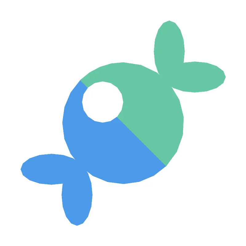 <svg width="800px" height="800px" viewBox="0 0 24 24" data-name="Layer 1" id="Layer_1" xmlns="http://www.w3.org/2000/svg"><title/><path d="M17.3381,11.8108c0,1.6154-.0563,3.2689-1.1041,4.3381A5.92793,5.92793,0,1,1,7.8428,7.7741c1.0699-1.0526,2.5703-.9616,4.1898-.9616C15.3065,6.8125,17.3381,8.5369,17.3381,11.8108Z" style="fill:#4c9ae8;fill-rule:evenodd"/><path d="M12,6.072A5.90909,5.90909,0,0,0,7.8083,7.8083l8.3834,8.3834A5.928,5.928,0,0,0,12,6.072Z" style="fill:#67c7a5;fill-rule:evenodd"/><ellipse cx="16.5" cy="5" rx="1.5" ry="3" style="fill:#67c7a5"/><ellipse cx="19" cy="7.5" rx="3" ry="1.5" style="fill:#67c7a5"/><ellipse cx="7.5" cy="19" rx="1.5" ry="3" style="fill:#4c9ae8"/><ellipse cx="5" cy="16.5" rx="3" ry="1.5" style="fill:#4c9ae8"/><circle cx="10" cy="9.9398" r="2" style="fill:#fff"/></svg>