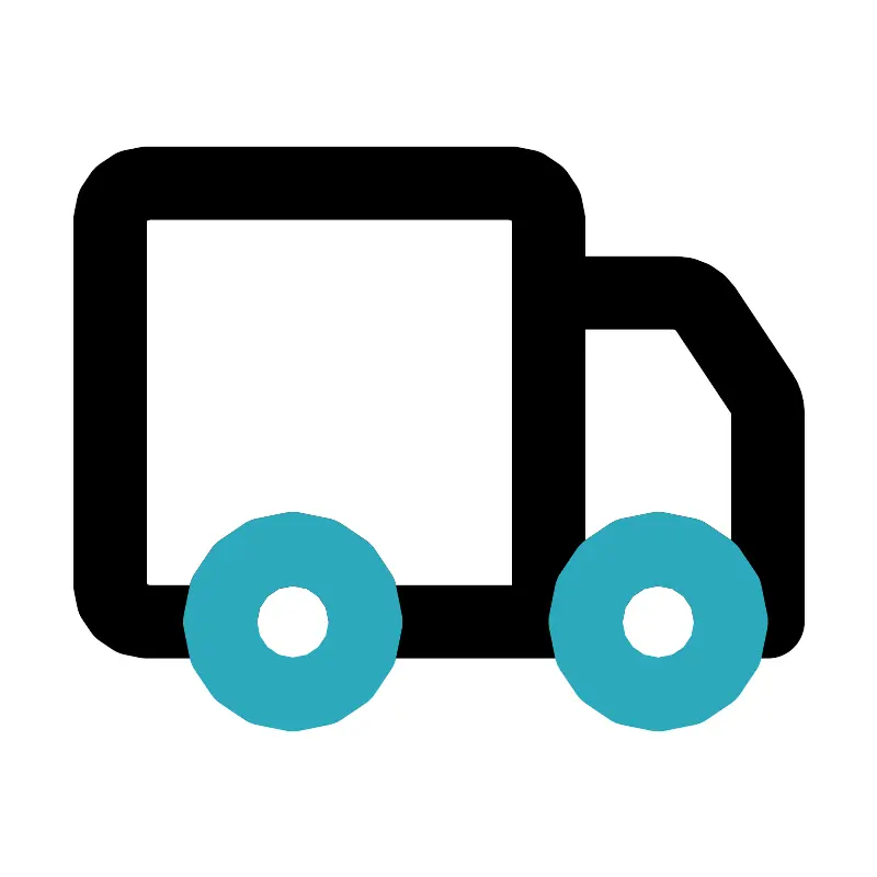<svg fill="#000000" width="800px" height="800px" viewBox="0 0 24 24" id="car-shipping" data-name="Line Color" xmlns="http://www.w3.org/2000/svg" class="icon line-color"><path id="primary" d="M15,6V17H10a2,2,0,0,0-4,0H4a1,1,0,0,1-1-1V6A1,1,0,0,1,4,5H14A1,1,0,0,1,15,6Zm5.83,4.75L19.3,8.45A1,1,0,0,0,18.46,8H15v9h1a2,2,0,0,1,4,0h1V11.3A1,1,0,0,0,20.83,10.75Z" style="fill: none; stroke: rgb(0, 0, 0); stroke-linecap: round; stroke-linejoin: round; stroke-width: 2;"></path><path id="secondary" d="M10,17a2,2,0,1,1-2-2A2,2,0,0,1,10,17Zm8-2a2,2,0,1,0,2,2A2,2,0,0,0,18,15Z" style="fill: none; stroke: rgb(44, 169, 188); stroke-linecap: round; stroke-linejoin: round; stroke-width: 2;"></path></svg>