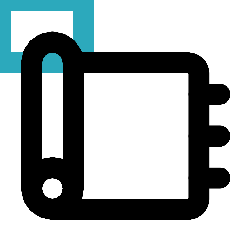 <svg fill="#000000" width="800px" height="800px" viewBox="0 0 24 24" id="carpet-3" data-name="Line Color" xmlns="http://www.w3.org/2000/svg" class="icon line-color"><rect id="secondary" x="7" y="10" width="8" height="6" transform="translate(22 26) rotate(180)" style="fill: none; stroke: rgb(44, 169, 188); stroke-linecap: round; stroke-linejoin: round; stroke-width: 2;"></rect><path id="primary" d="M5,20H18a1,1,0,0,0,1-1V7a1,1,0,0,0-1-1H7" style="fill: none; stroke: rgb(0, 0, 0); stroke-linecap: round; stroke-linejoin: round; stroke-width: 2;"></path><path id="primary-2" data-name="primary" d="M7,6V18a2,2,0,0,1-4,0V6A2,2,0,0,1,7,6ZM5,16a2,2,0,1,0,2,2A2,2,0,0,0,5,16ZM21,9H19m2,4H19m2,4H19" style="fill: none; stroke: rgb(0, 0, 0); stroke-linecap: round; stroke-linejoin: round; stroke-width: 2;"></path></svg>