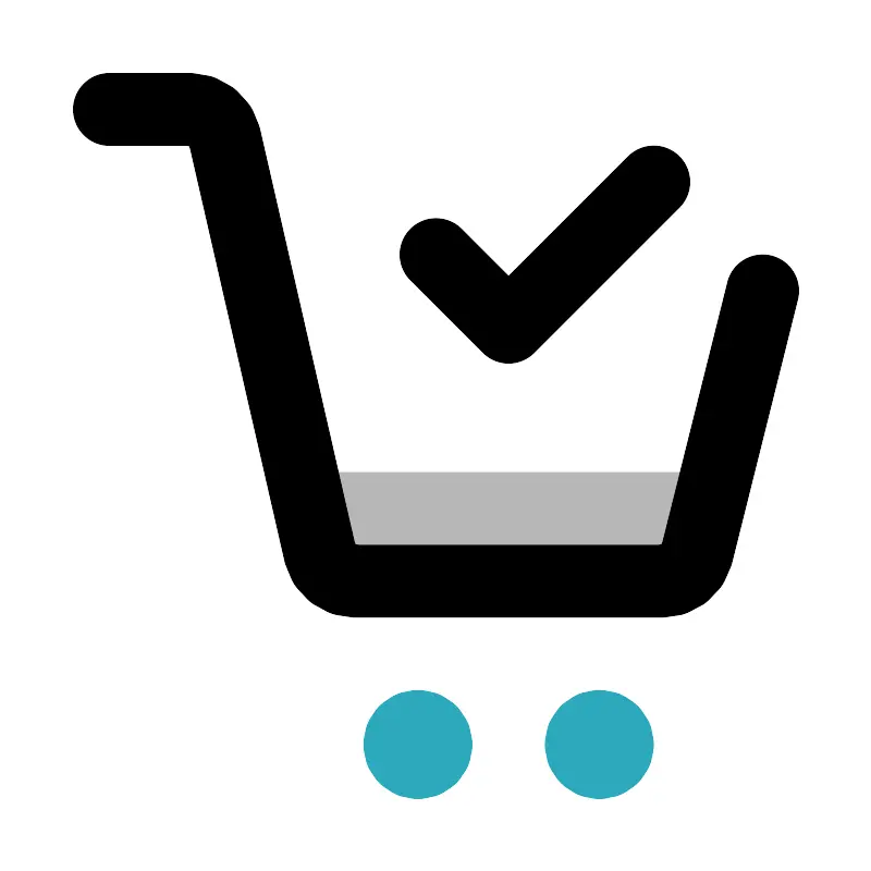 <svg width="800px" height="800px" viewBox="0 0 24 24" id="cart-check" xmlns="http://www.w3.org/2000/svg" class="icon multi-color"><title style="stroke-width: 2;">cart check</title><path id="tertiary-fill" d="M20,13H8l.77,2.32a1,1,0,0,0,1,.68h8.56a1,1,0,0,0,.95-.68Z" style="fill: #b7b7b7; stroke-width: 2;"></path><path id="primary-stroke" d="M21,8l-1.81,7.24a1,1,0,0,1-1,.76H9.8a1,1,0,0,1-1-.78L6.18,3.78A1,1,0,0,0,5.2,3H3m9,4,2,2,4-4" style="fill: none; stroke: rgb(0, 0, 0); stroke-linecap: round; stroke-linejoin: round; stroke-width: 2;"></path><path id="secondary-stroke" d="M12,20.5a.5.5,0,1,1-.5-.5A.5.5,0,0,1,12,20.5Zm4.5-.5a.5.5,0,1,0,.5.5A.5.5,0,0,0,16.5,20Z" style="fill: none; stroke: rgb(44, 169, 188); stroke-linecap: round; stroke-linejoin: round; stroke-width: 2;"></path></svg>
